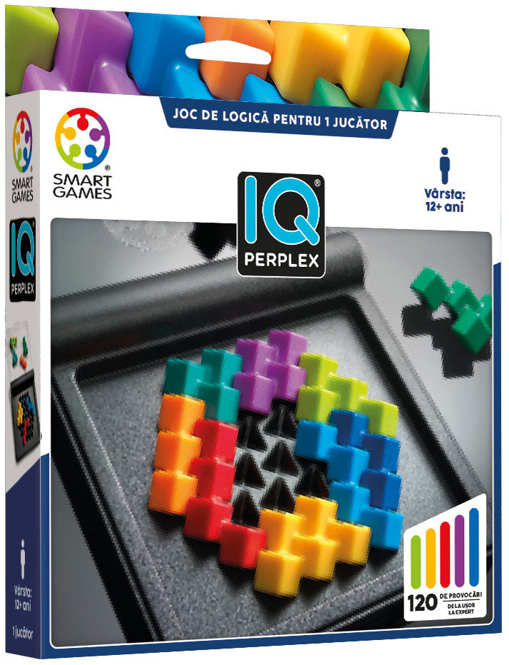 IQ Perplex este un joc de logica compact si portabil, din seria Smart Games, de inalta calitate, care vine intr-o cutie cu capac transparent si are 120 de provocari logice cu dificultati crescatoare, recomandat pentru varstele 12+, care testeaza si dezvolta abilitatile cognitive ale jucatorilor.