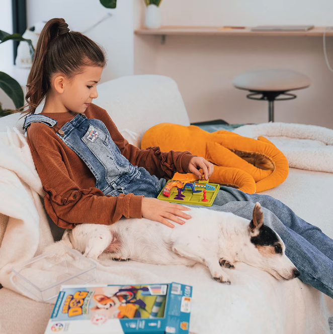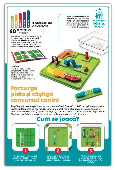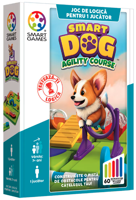 Smart Dog este un joc de logica cu provocari tip puzzle, din seria Smart Games, de inalta calitate, cu un design incantator si 60 de provocari logice cu dificultati crescatoare, recomandat pentru varstele 7+, care testeaza si dezvolta abilitatile cognitive ale jucatorilor.