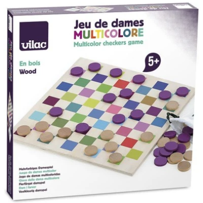Reînvie jocul tradițional de dame cu o versiune multicoloră de la renumitul brand francez Vilac. Acest joc din lemn frumos lucrat nu este doar distractiv, ci dezvoltă și gândirea logică și concentrarea celor mici.