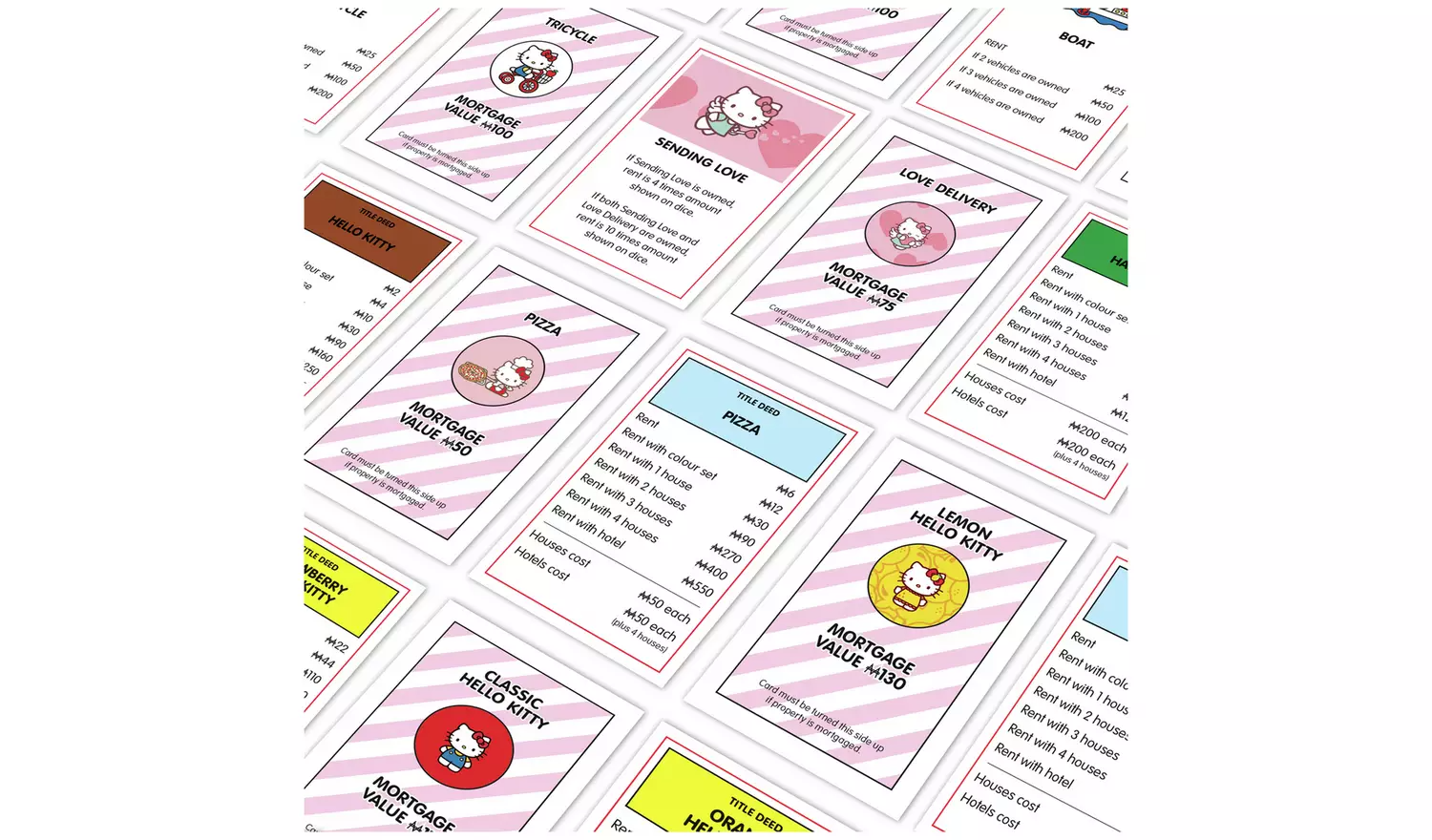 Watch out for Hello Kitty themed Chance and Community Chest cards, which could help or hinder your chances of success!