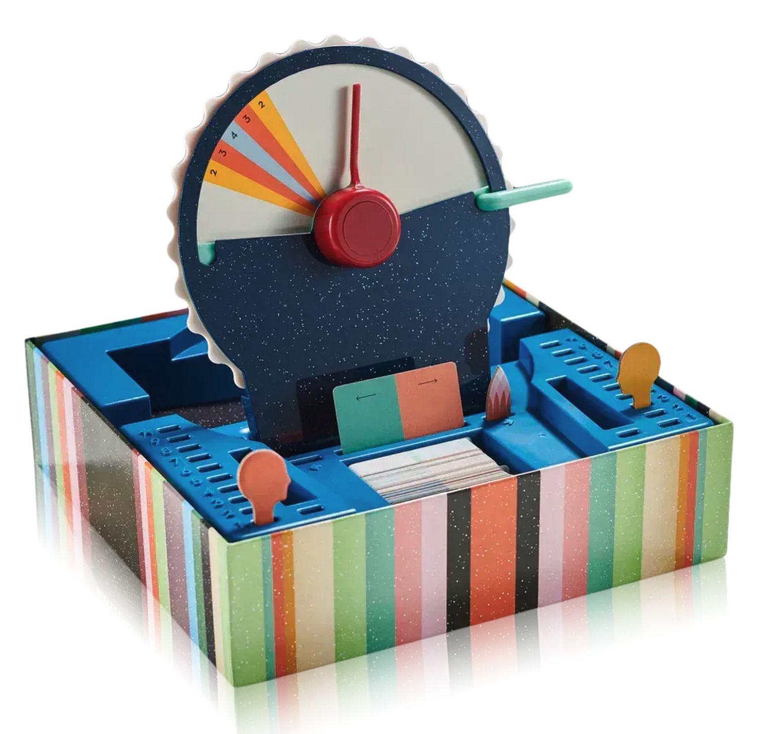 „Pe aceeași lungime de undă” este un party game cooperativ amuzant și surprinzător, în care tu și echipa ta trebuie să vă citiți gândurile – la propriu! Un jucător dă un indiciu, iar ceilalți trebuie să ghicească pe unde se află „valul mental” pe o scară invizibilă între două extreme.