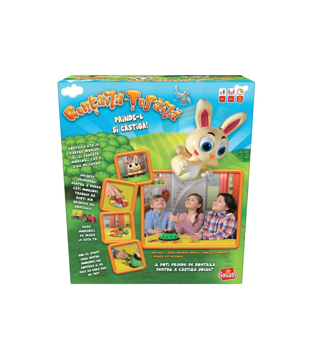 Invarte spinnerul si afla cati morcovi trebuie sa scoti. Pune morcovii pe masa, in fata lui Rontaila, dar ai grija: daca sare, trebuie sa fii rapid! Cine il prinde, castiga jocul!