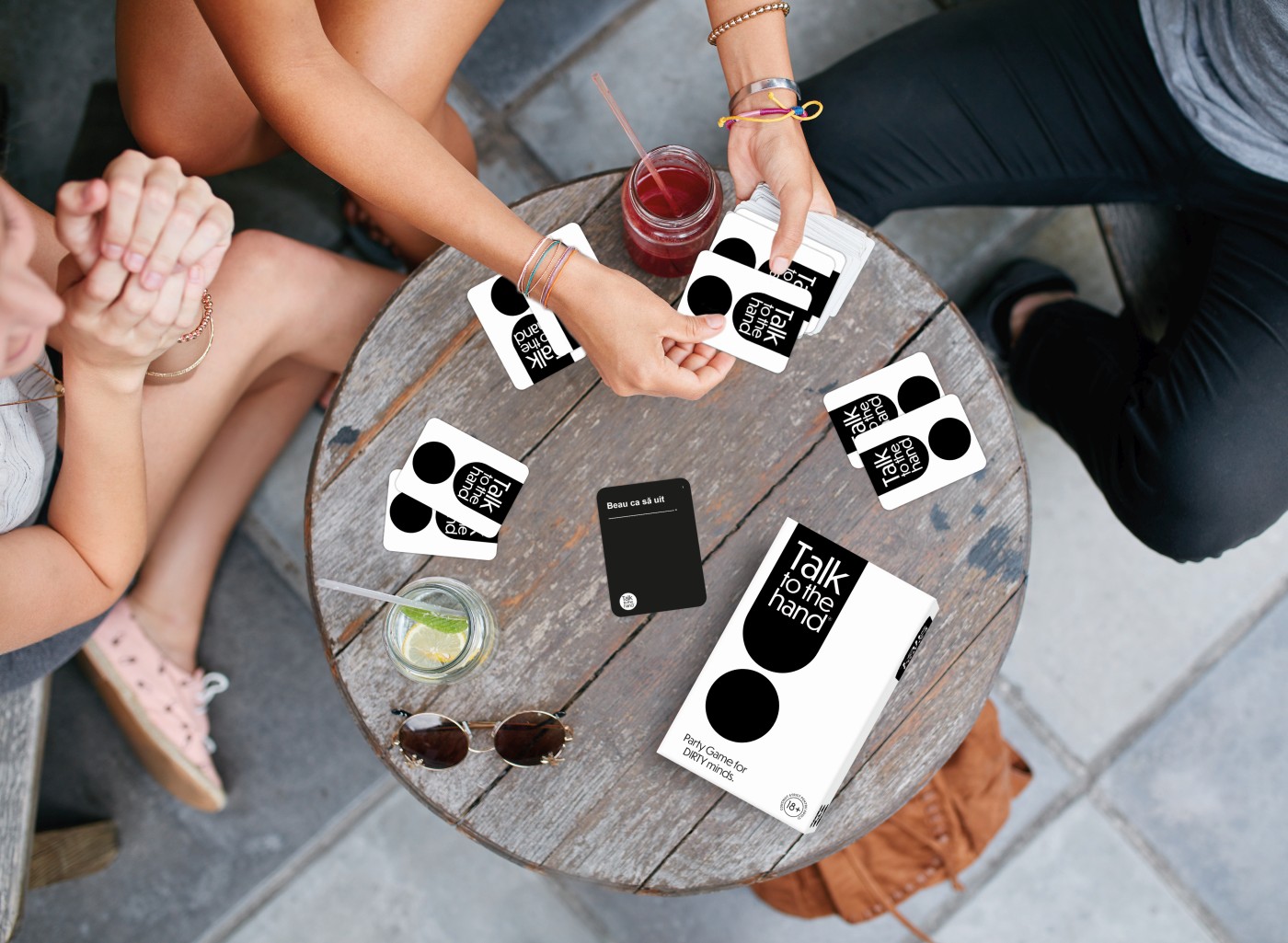 Un jucator intreaba cu un cartonas negru iar ceilalti raspund cu cel mai amuzant cartonas alb.