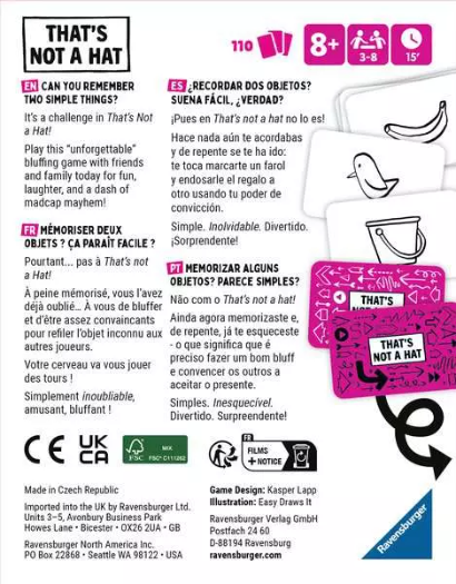 Indiferent dacă joci acasă sau în deplasare, That’s Not A Hat are reguli simple și un format compact, ceea ce îl face ușor de jucat oriunde și oricând.