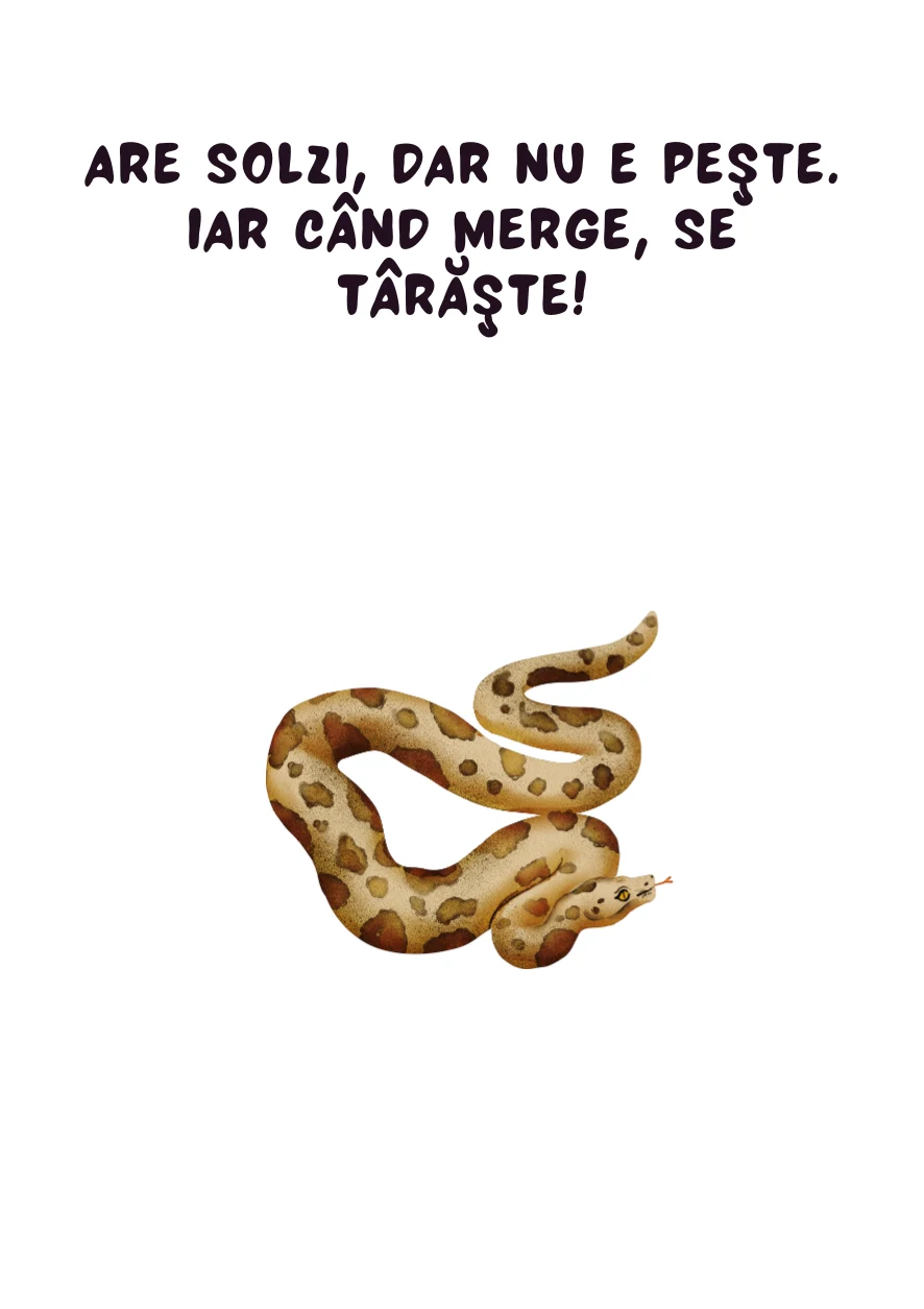 Fiecare cartonaș conține ghicitoarea sub formă de text și imaginea reprezentativă a răspunsului corect.