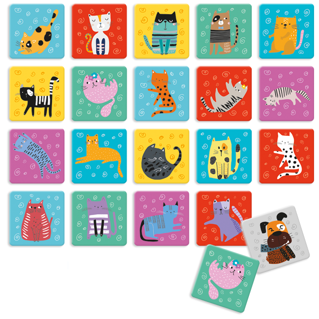 Așezați toate cărțile cu fața în jos pe masă. Rând pe rând se întorc câte două cărți. Dacă sunt diferite, jucătorul le întoarce înapoi pe dos, lăsând rândul jucătorului din stânga sa.