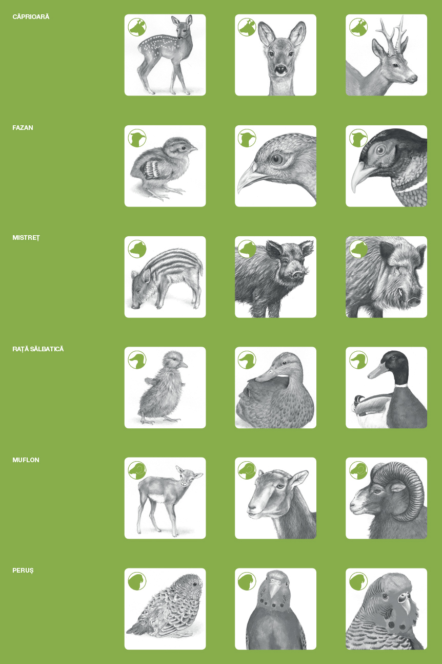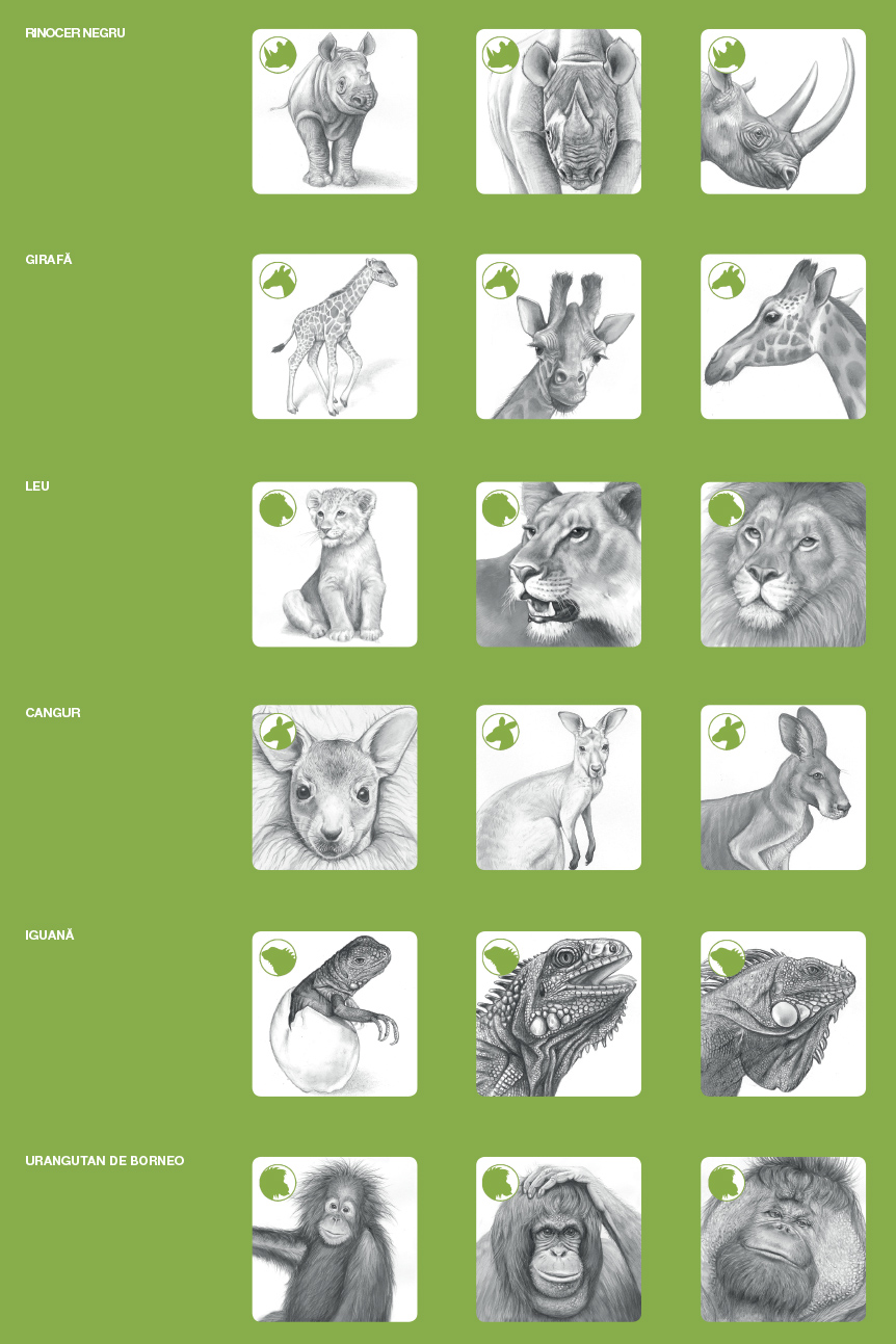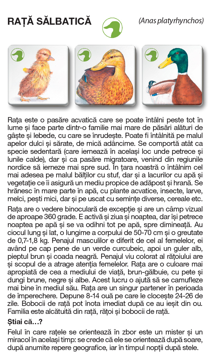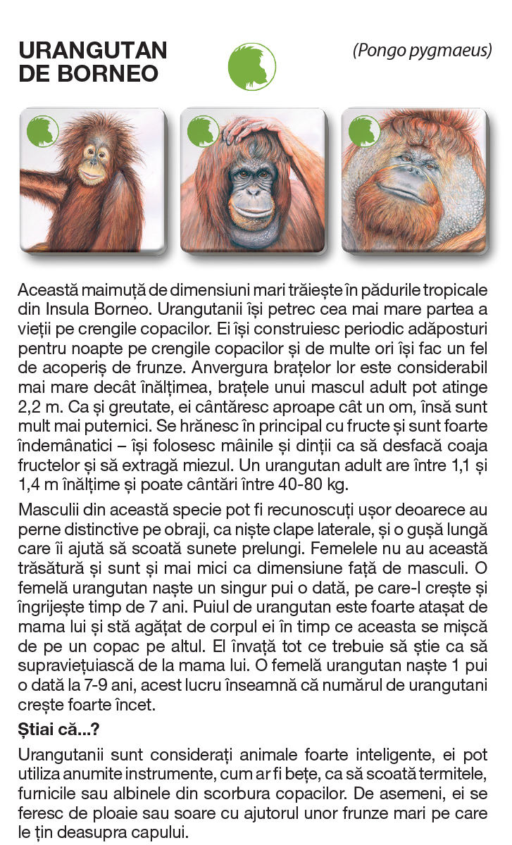 - 1 minienciclopedie de 16 pagini color cu instructiunile de joc si prezentarea a 12 animale (text si ilustratii).