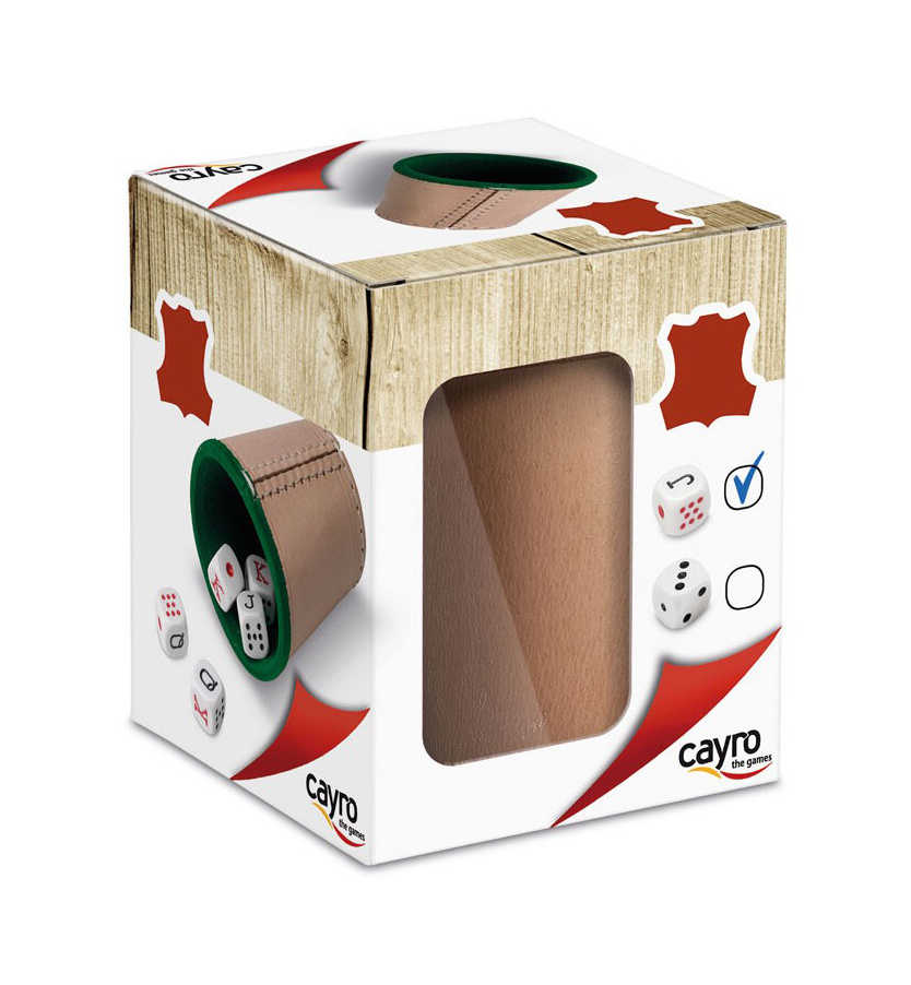 Poker cu zaruri Cayro, cu pahar din piele naturala si 5 zaruri de 16mm este o varianta interesanta si distractiva a jocului clasic de poker. Setul contine un pahar din piele naturala si 5 zaruri de 16mm, realizate dintr-un material de calitate superioara.