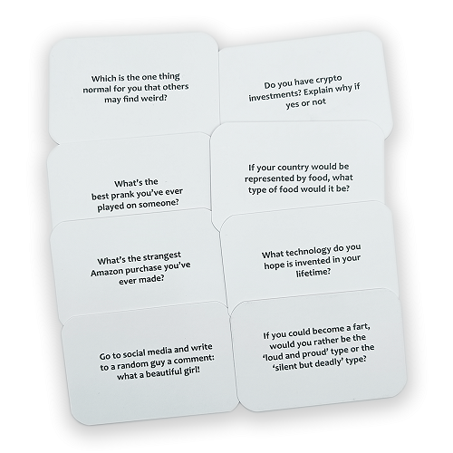 - 70 de carduri cu intrebari picante si provocari care vor da petrecerii tale un vibe pozitiv si si vei avea parte de multa distractie impreuna cu prietenii tai.