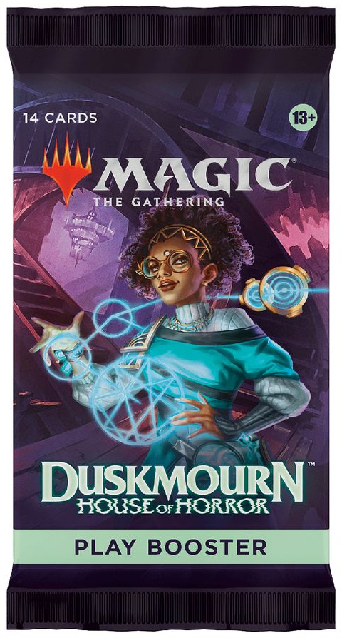 Cand esti prins in coridoarele nesfarsite ale Duskmourn, singura iesire este prin ele. Alatura-te unor supravietuitori curajosi si lupta-ti drumul pana in inima Casei. Acest pachet de joc Duskmourn: House of Horror, care contine 36 de pachete de joc, este perfect atat pentru jocul limitat, cat si pentru deschiderea pachetelor doar pentru distractie. Fiecare pachet de joc contine 14 carti Magic: The Gathering si 1 carte Token/Ad sau carte Art. Fiecare pachet include 1–4 carti de raritate Rara sau mai mare si 3–5 Neobisnuite, 6–9 Comune si 1 carte Land. 1 carte de orice raritate este Traditional Foil. O carte Mythic Rare Traditional Foil poate fi gasita in 1% din boostere, iar o carte Land Traditional Foil inlocuieste o carte Land in 20% din boostere.