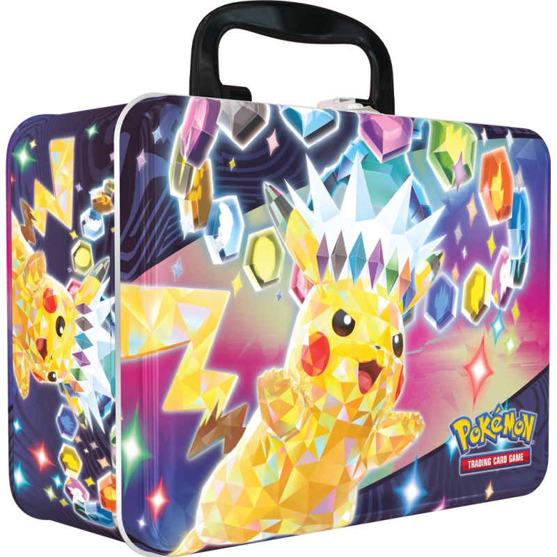 Pokemon TCG - Fall Collector's Chest 2024 este o cutie specială de colecție. În cutie găsim pachete booster și cărți promoționale, fiecare dintre ele prezentând Pokemonii legendari din cele mai recente ediții.