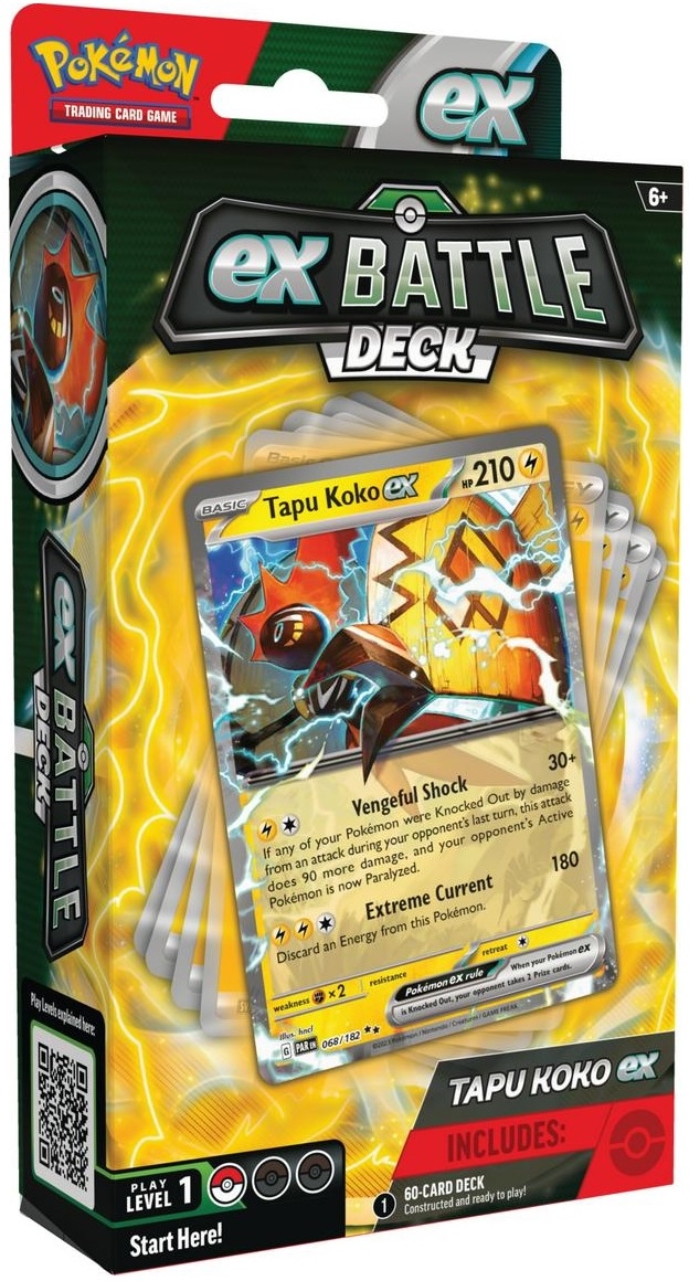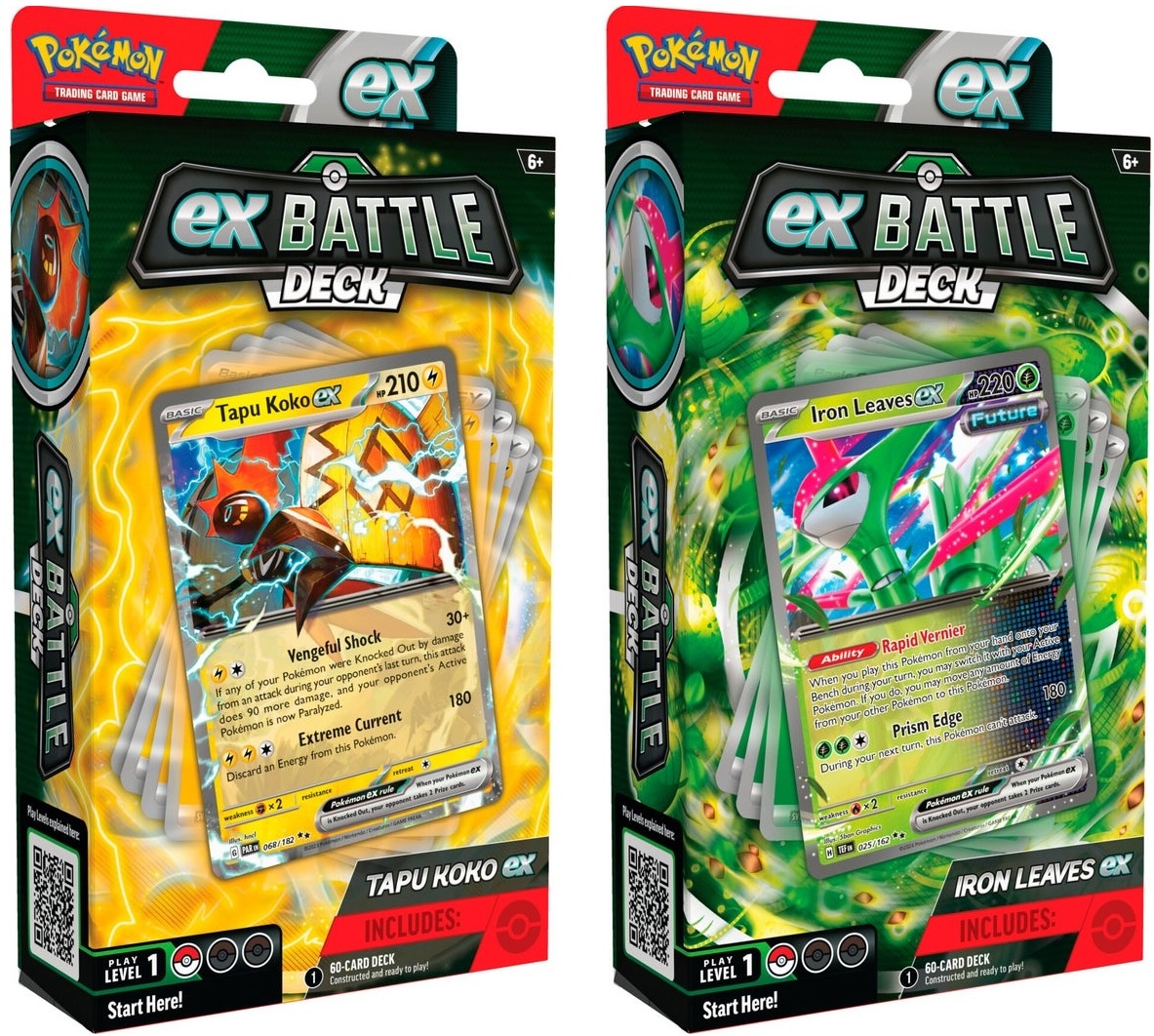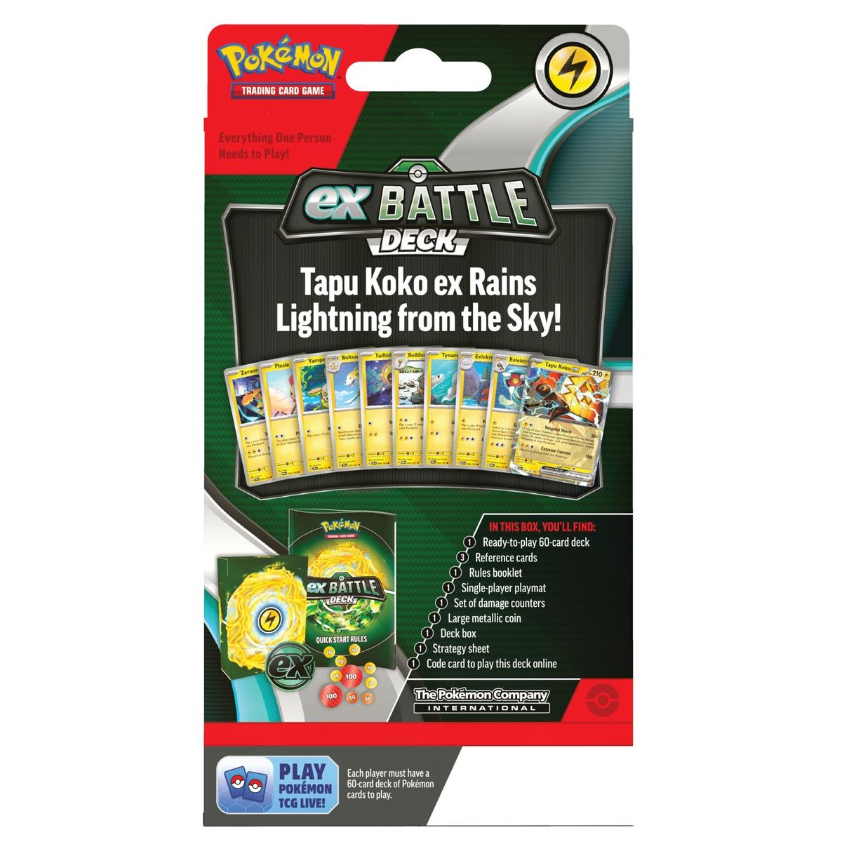 Pokémon TCG: ex Battle Deck, construit în jurul unui Pokémon puternic numit Tapu Koko sau Iron Leaves, conține tot ce este necesar pentru un jucător care dorește să înceapă să joace sau să achiziționeze un deck nou, competitiv, gata de joc.