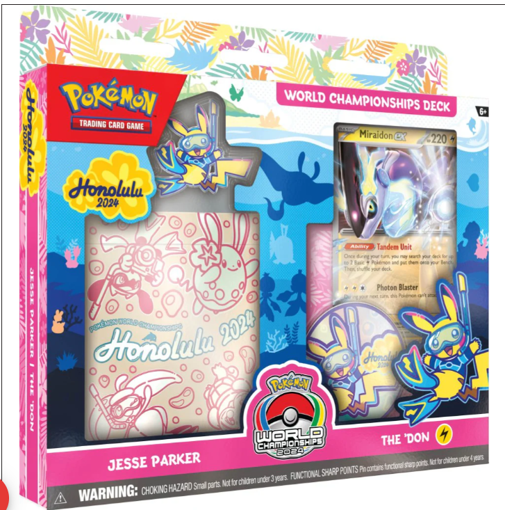 Optează pentru unul dintre cele patru pachete puternice, fiecare reprezentând o replică fidelă a unui deck folosit de un pretendent la titlu în cadrul Campionatului Mondial Pokémon Trading Card Game 2024! Vei găsi pachete de la campionul diviziei Junior, Sakuya Ota (Japonia), campionul diviziei Senior, Evan Pavelski (Statele Unite), semifinalistul diviziei Masters, Jesse Parker (Statele Unite) și campionul diviziei Masters, Fernando Cifuentes (Chile).