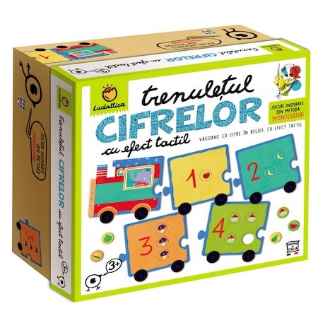 Trenulețul Cifrelor cu efect tactil este conceput după metoda didactică Montessori și conține 15 piese de puzzle reprezentând vagoane cu cifre în relief, asamblarea lor formând un trenuleț.