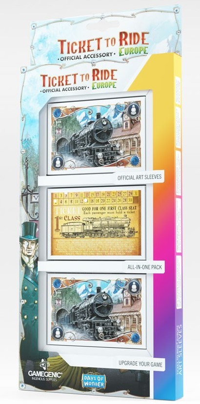 Călătoria începe cu ambalajul de calitate premium al Art Sleeves, care se potrivește cu designul original al jocului. Foliile Art Sleeves de înaltă calitate, mate, cu licență oficială, sunt special concepute pentru cărțile de joc Ticket to Ride Europe ®. Foliile sunt optimizate ca dimensiune pentru ediția originală a jocului. Pachetul all-in-one include 114 mâneci pentru tren, 34 mâneci pentru bilete, 4 mâneci transparente și mânecile suplimentare sunt luate în calcul!