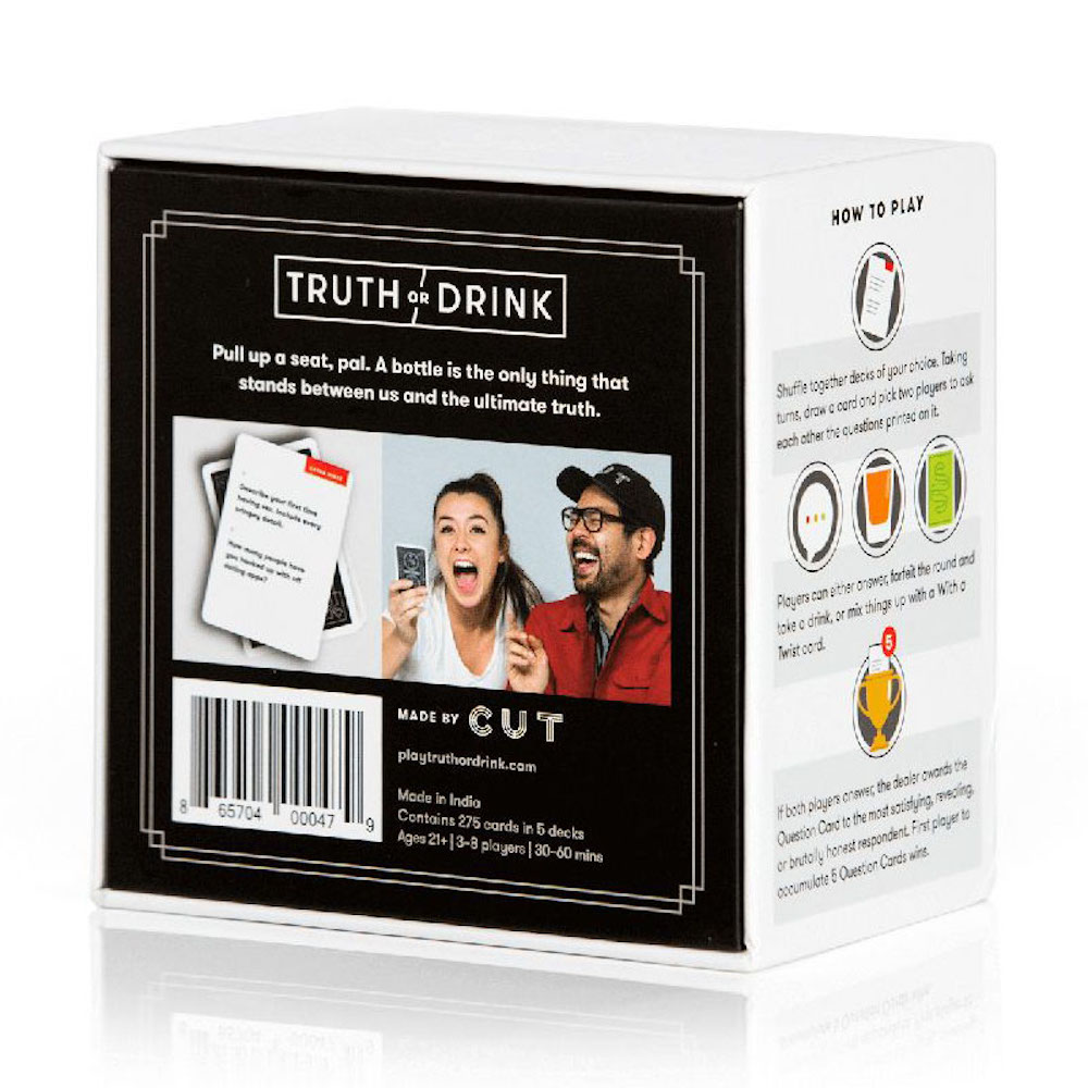 Truth or Drink este un joc de cărți de băut modular simplu. În fiecare tură, un judecător trage o carte de întrebare și selectează două persoane care să răspundă sau să bea.