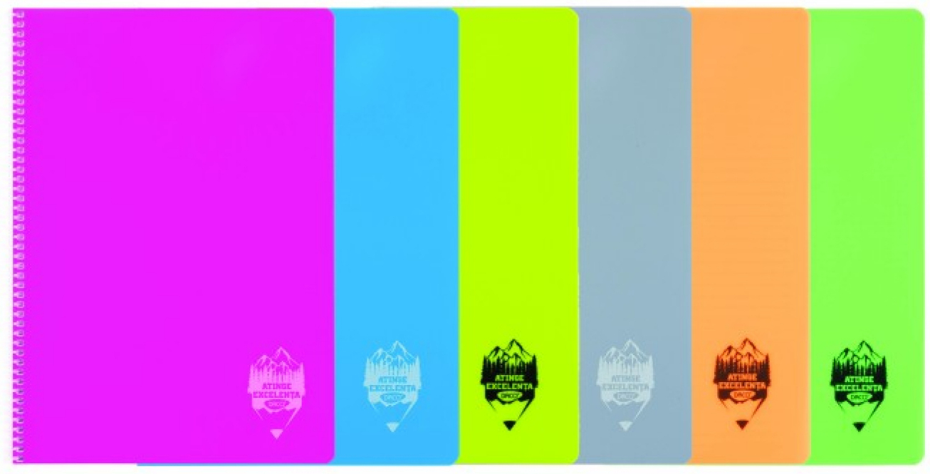 Un caiet A4 cu spiră Atinge Excelența cu 144 de file DACO este un caiet de dimensiuni medii, cu o copertă de plastic de calitate superioară. Are un format compact, ușor de transportat și potrivit pentru a fi folosit în diverse situații.