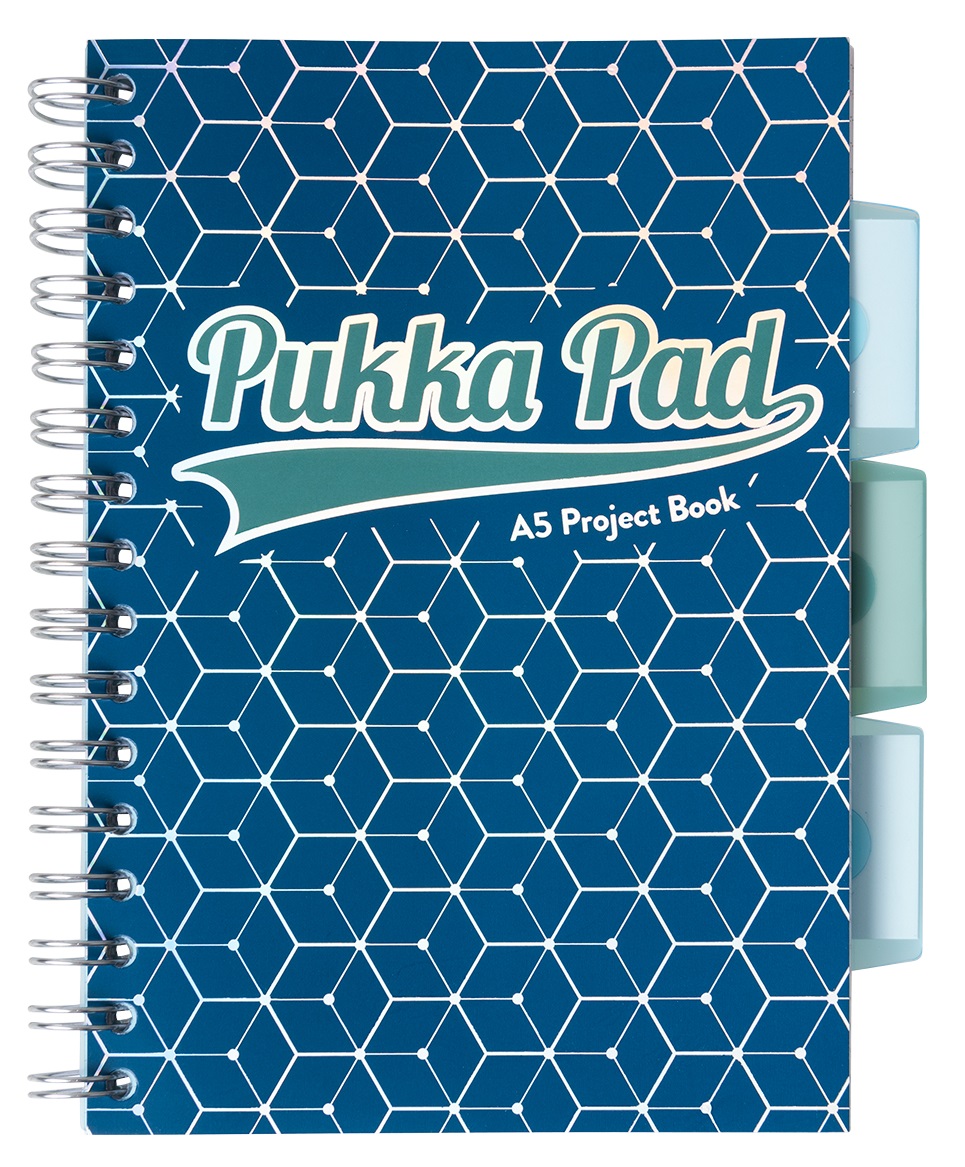 Caiet cu spirala si separatoare Pukka Pads Project Book Glee dictando A5 albastru inchis.