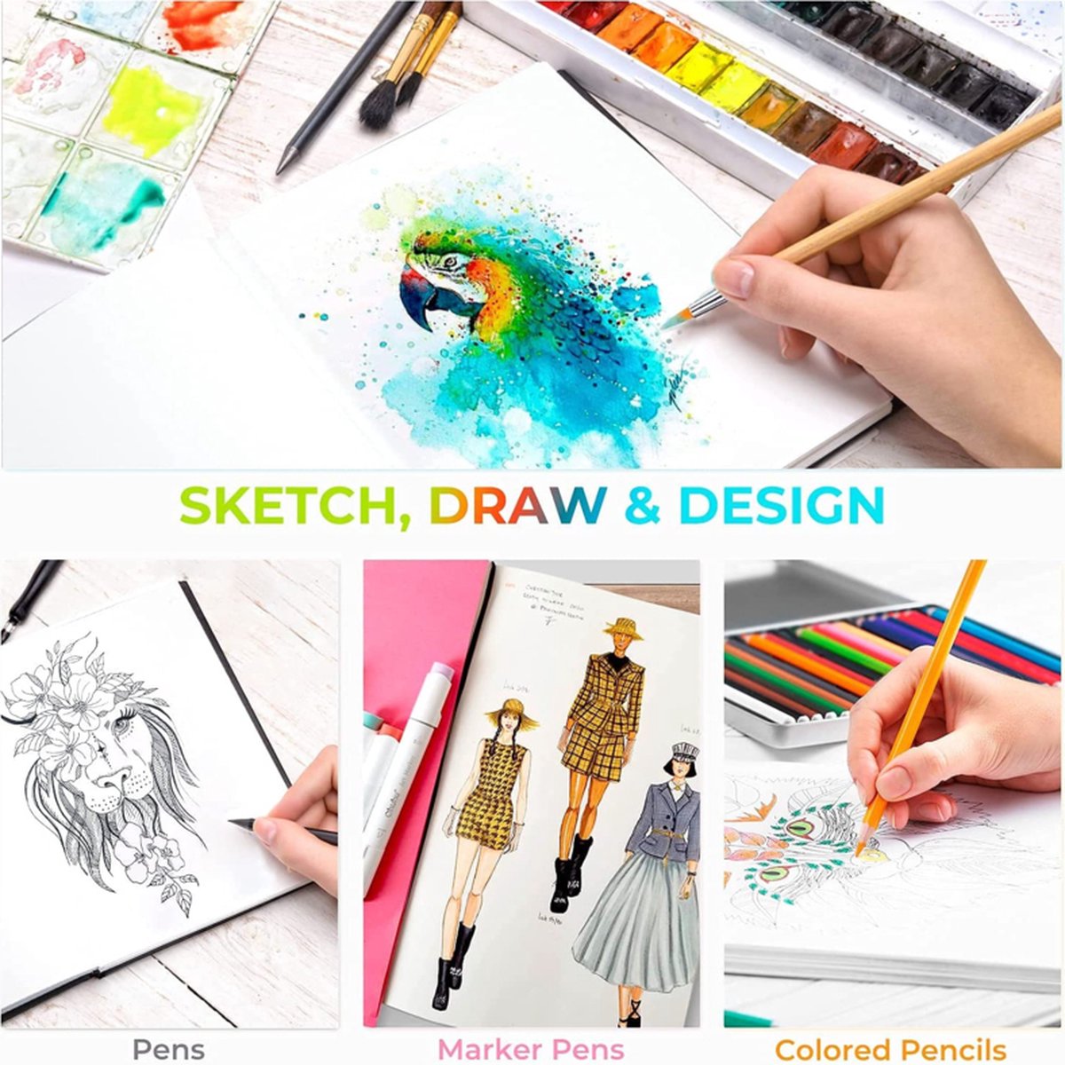 200 de grame de hârtie albă cu textură medie și margine perforată. Acest lucru face ușoară scoaterea unei pagini din carte fără a o rupe. Blocul de hârtie este portabil și se potrivește în aproape orice geantă, astfel încât să poți desena oriunde te lovește inspirația!