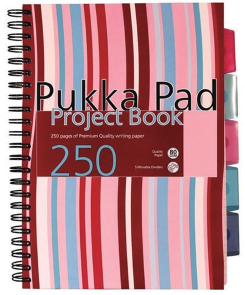 Caiet dictando cu spirala si separatoare A4 (125 file) - Pukka Pad Project Book Stripes (Rosu)