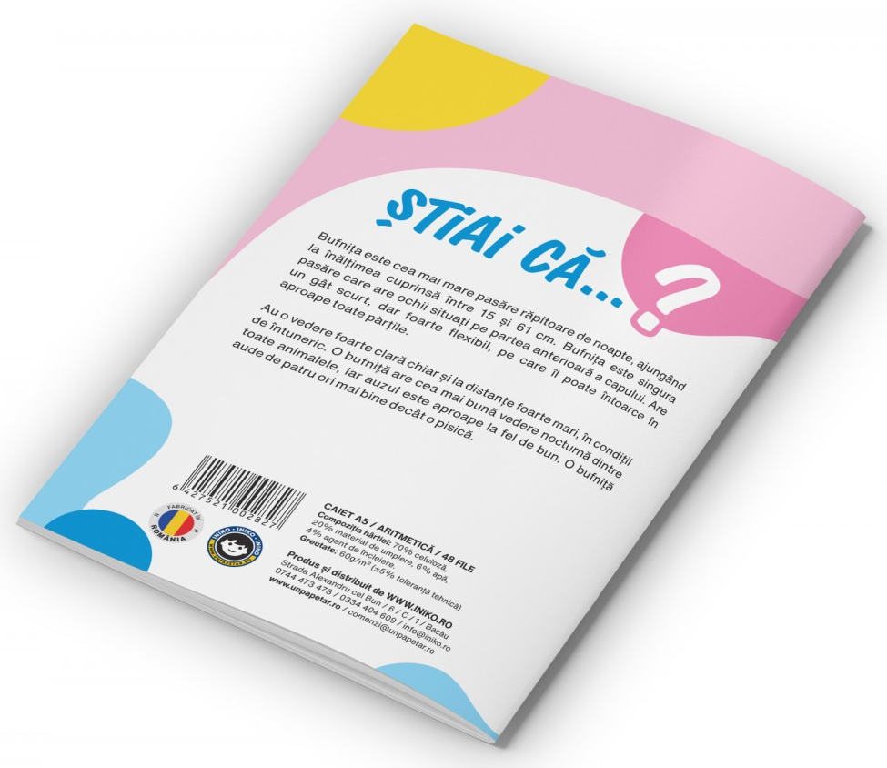 Caiet - Matematica, Bufnita, format A5, 48 file, capsat, gama Discover the wild