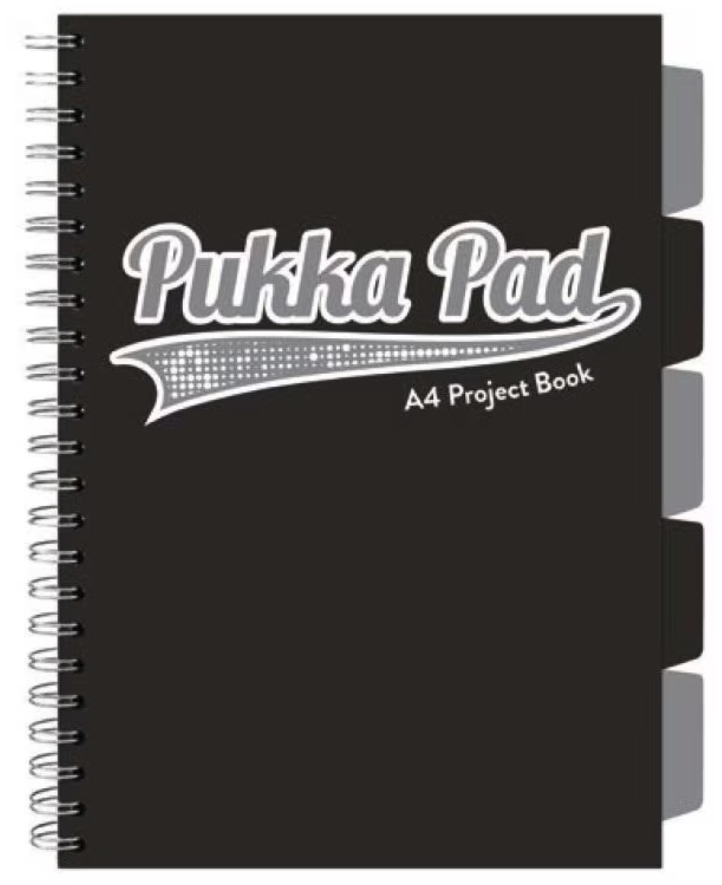 Caiet matematica cu spirala si separatoare A4 (100 file) - Pukka Pad Project Book (Negru)