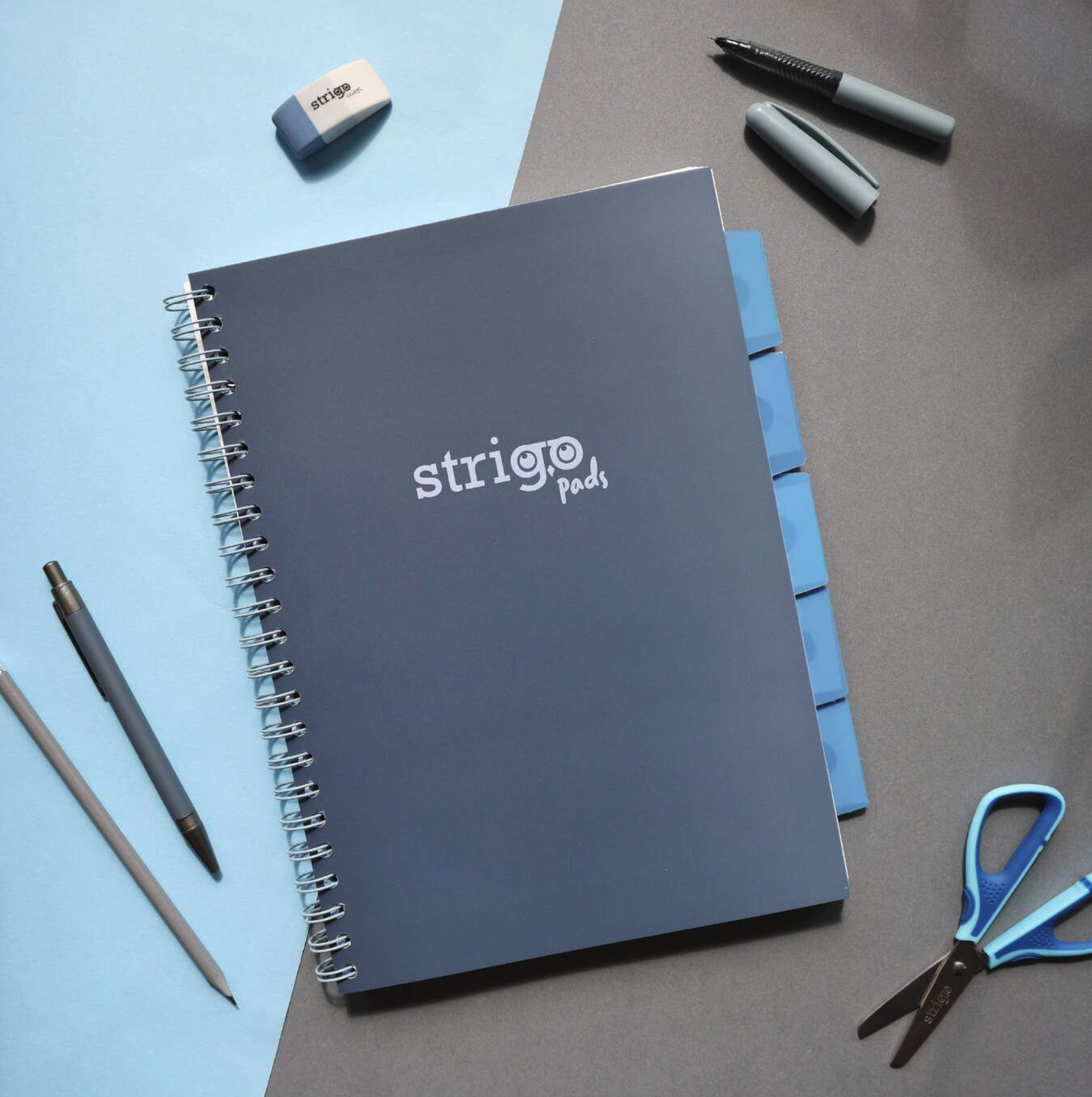 Caiet matematica cu spirala si separatoare A4 (100 file) - Strigo Pads Project Book (Albastru)