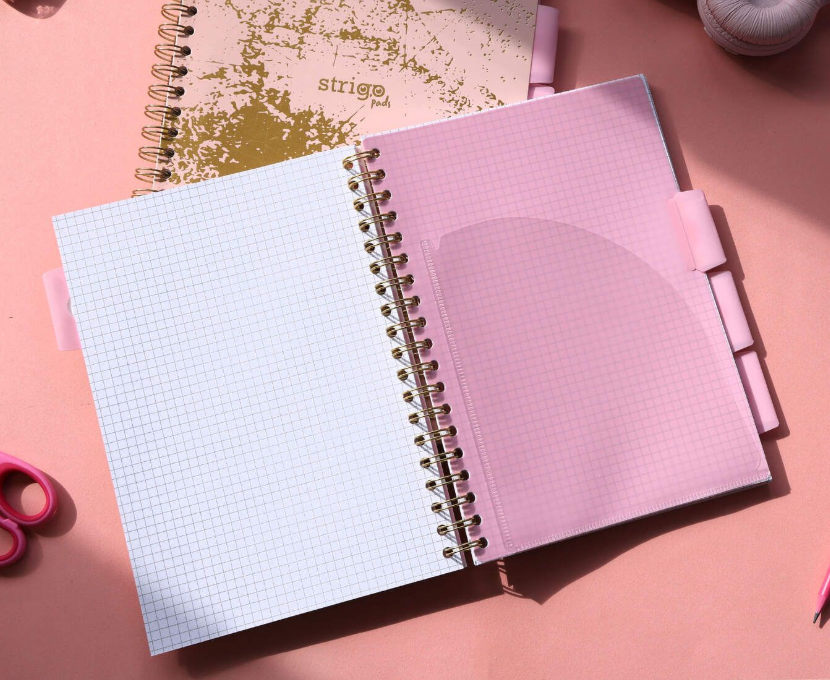 Caiet cu spirala si separatoare, STRIGO PADS Project Book Marmorat