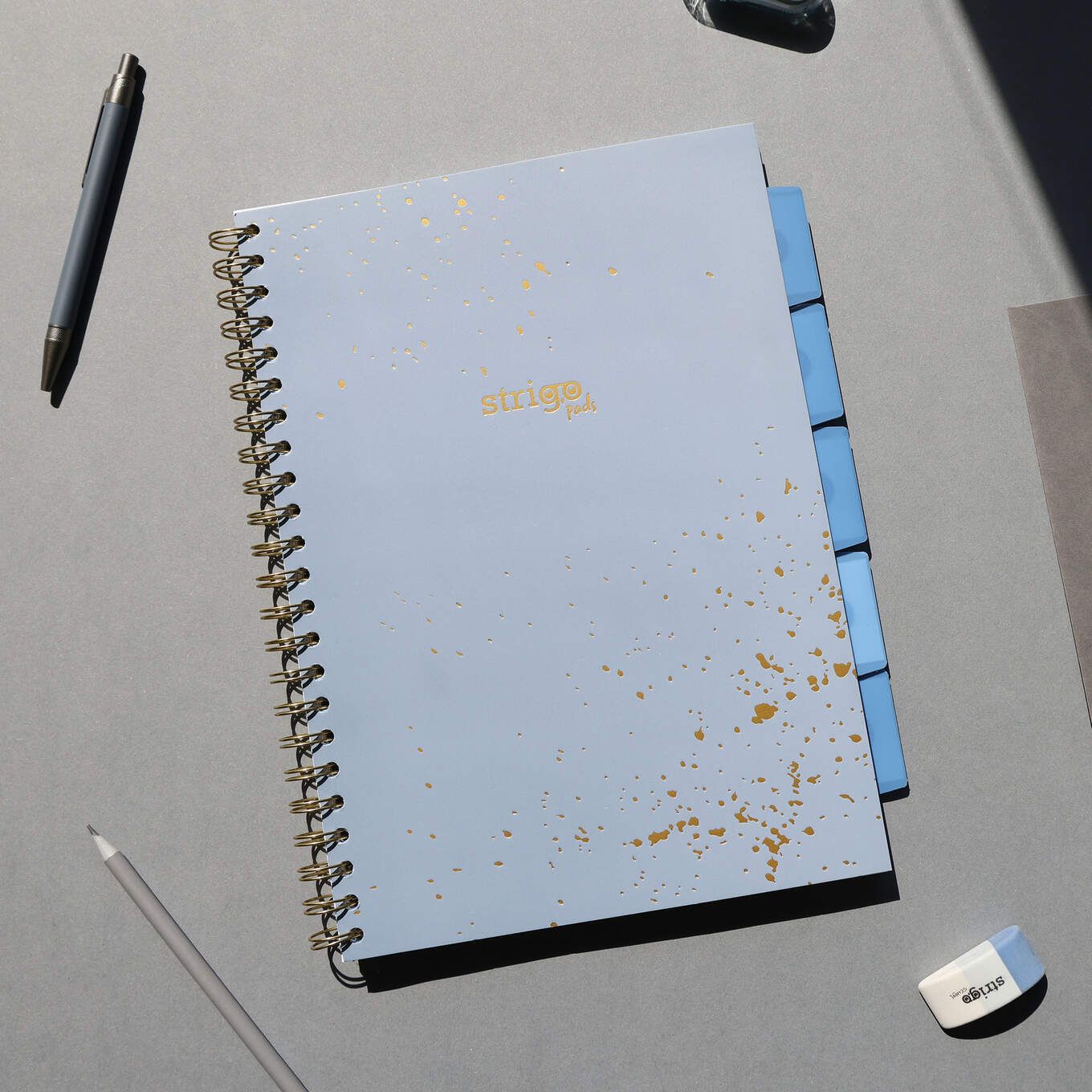 Caiet cu spirala si separatoare, STRIGO PADS Project Book Marmorat