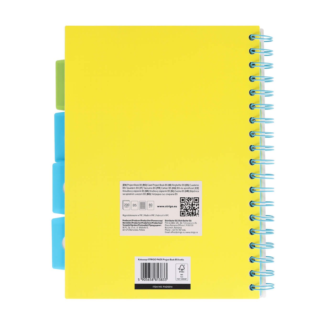Caiet cu spirala si separatoare, STRIGO PADS Project Book Neon