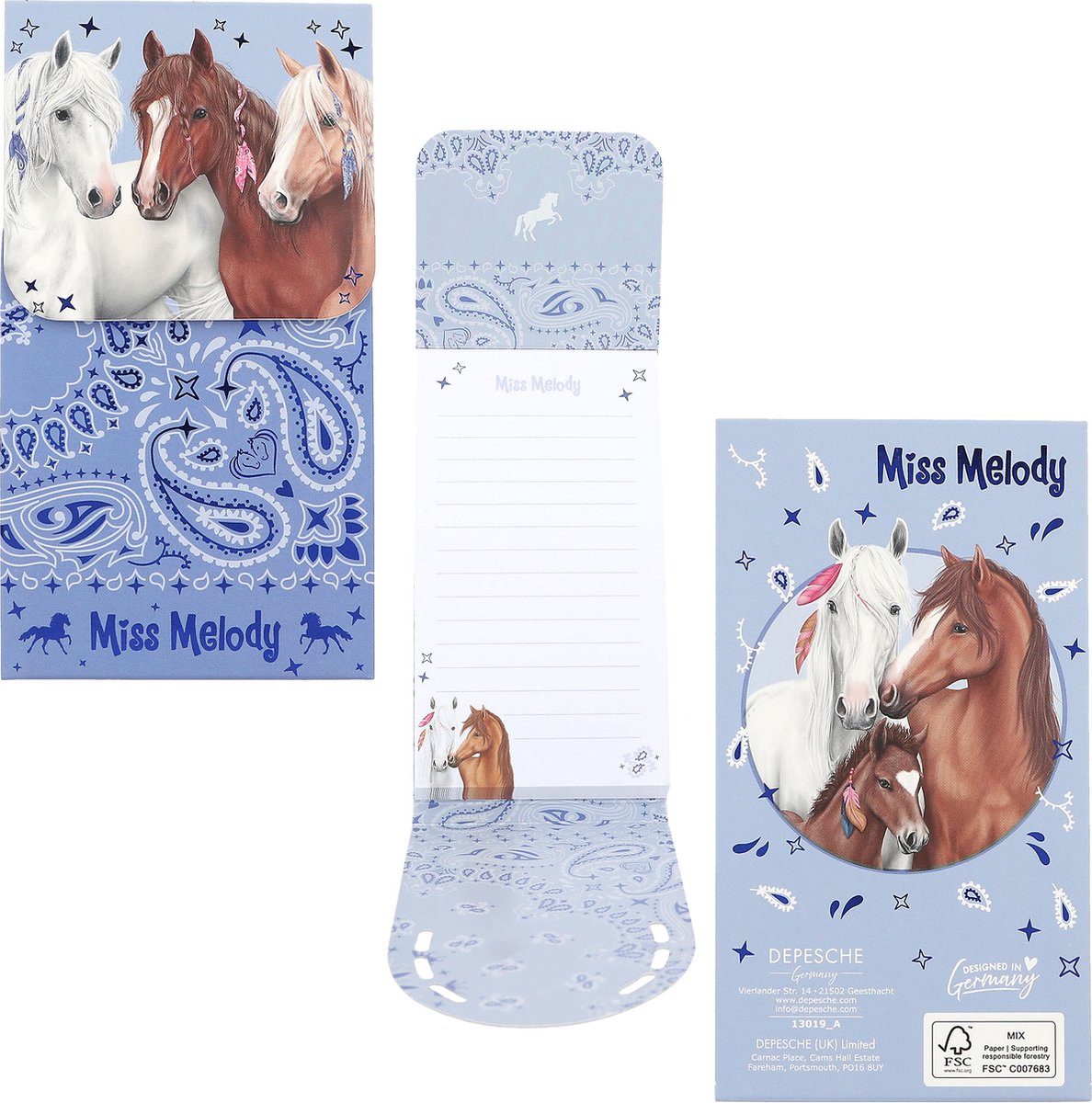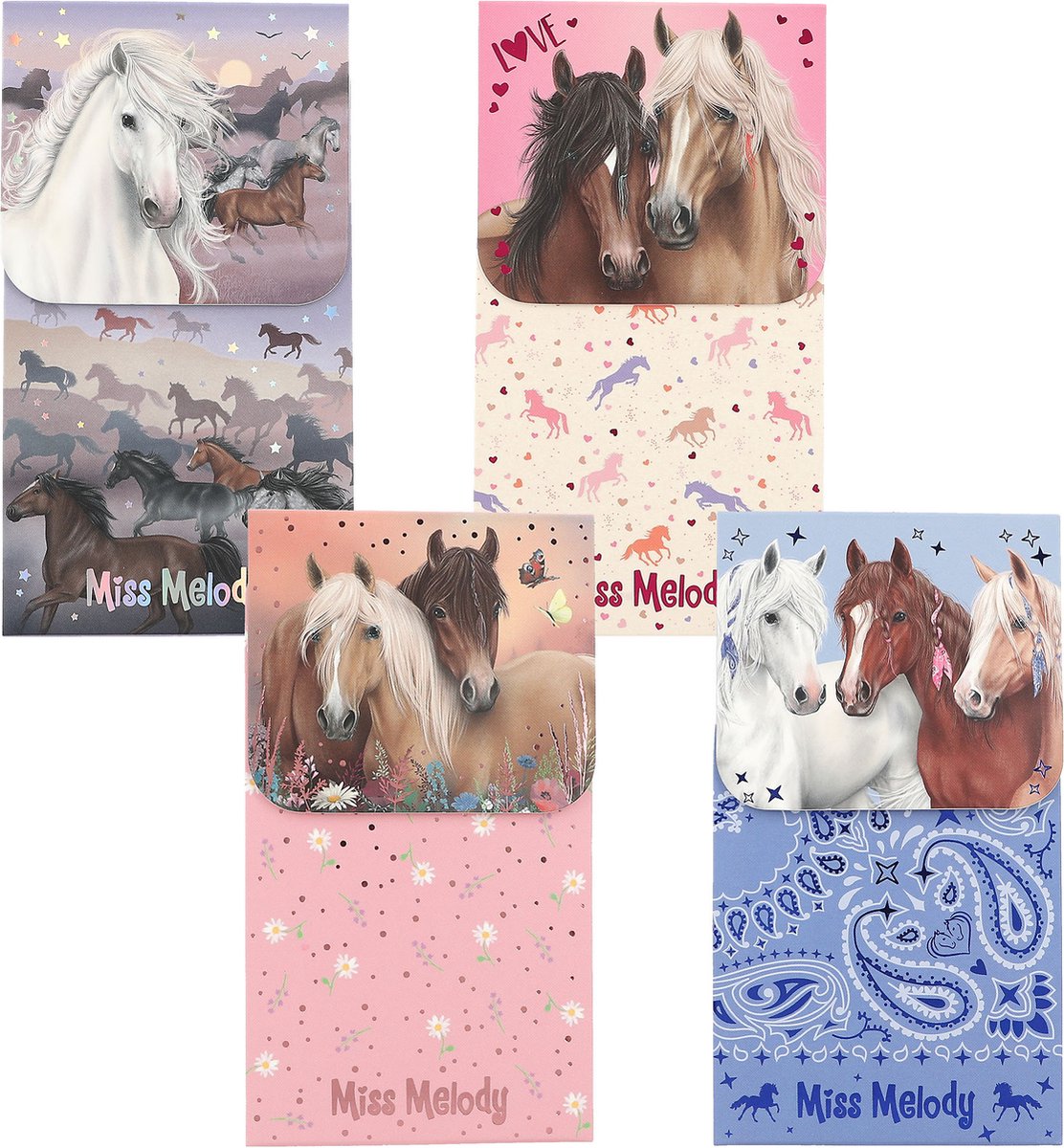 Acest Carnet cu magnet - Miss Melody - Mai multe modele - Pret pe bucata înfățișează armăsarul popular printre copii, Miss Melody.