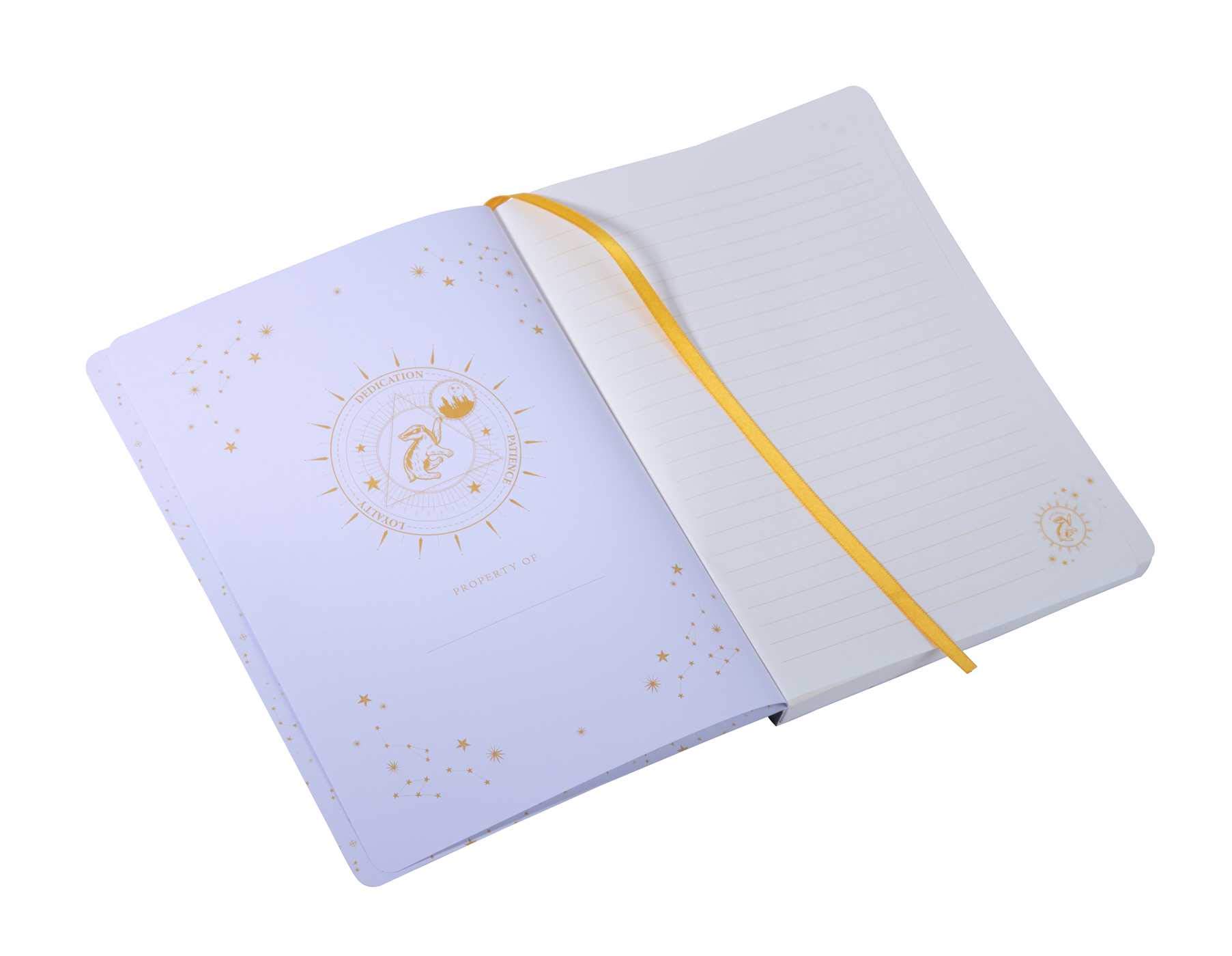 Carnet pentru pasionații seriei Harry Potter, având pe copertă un simbol al Casei Hufflepuff minunat realizat cu accente aurii.