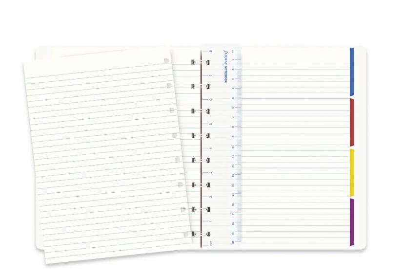 Datorită construcției inteligente, paginile pot fi adăugate, mutate sau eliminate cu ușurință. Spre deosebire de multe alte notebook-uri, acest carnet rămâne perfect plat indiferent de numărul de pagini atașate. Este prevăzut cu riglă mobilă și buzunar pentru documente secrete.