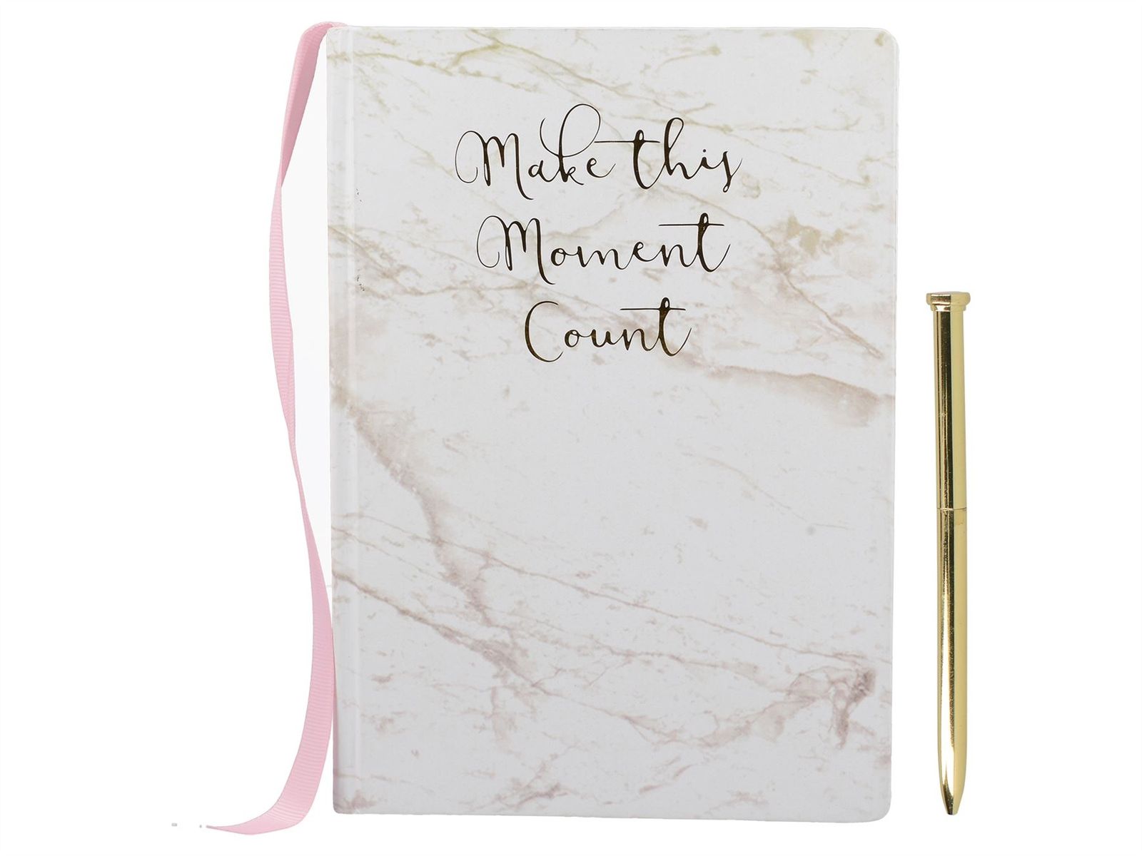 Carnet cu pix elegant, ce face parte din colecția Ava & I. Acesta echilibrează perfect frumusețea feminină cu stilul modern. Efectul de marmură de pe copertă și mesajul motivațional, îl fac cadoul perfect pentru o persoană dragă.