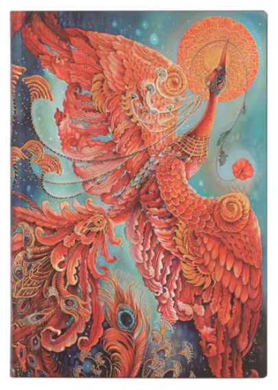 In this bright and lively Firebird image, the story of the Phoenix, rising from its own ashes, also comes to mind. In the confluence of these legends comes a sense of singularity, with all watched over by the warmth of the sun. May this flaming red firebird bring such good luck to your own life and brighten up a dark spot in your home.