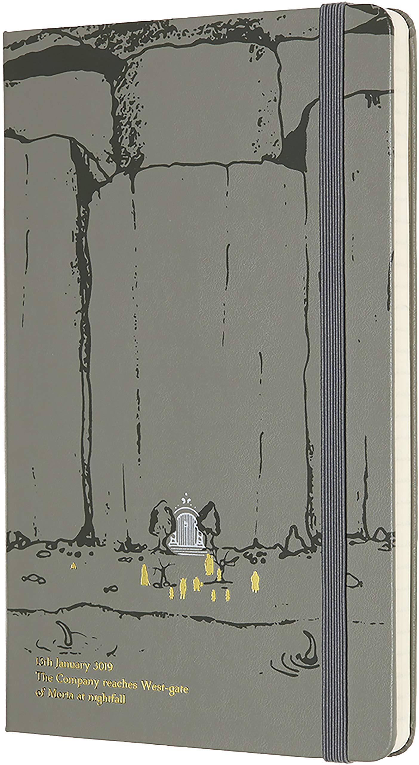 The Lord of the Rings Limited Edition Notebook Collection celebrates this classic literary adventure and the epic journey that unfolds on its pages. The notebooks feature some of the most iconic and enchanted landscapes crossed by the book's characters ? an infinitely rich world created in the mind of J.R.R. Tolkien which has, over time, become part of our collective imagination. Choose the West-gate of Moria at nightfall. With this collection, Moleskine pays tribute to Tolkien and to any journey that inspires thought, creativity and change. Designed to become a gateway to your own ordinary and extraordinary adventures, this notebook invites you to record all the wonderful places your feet and your imagination take you.