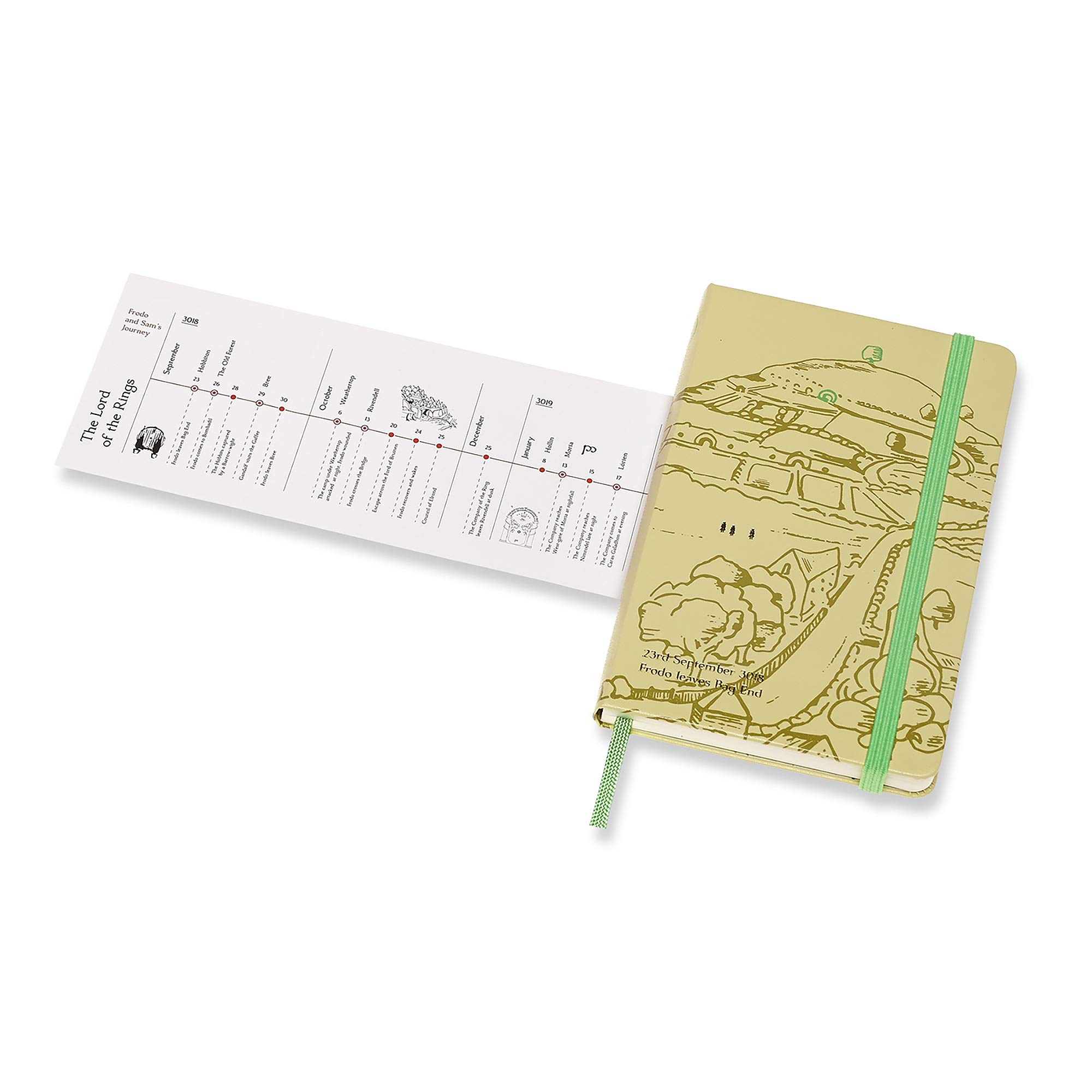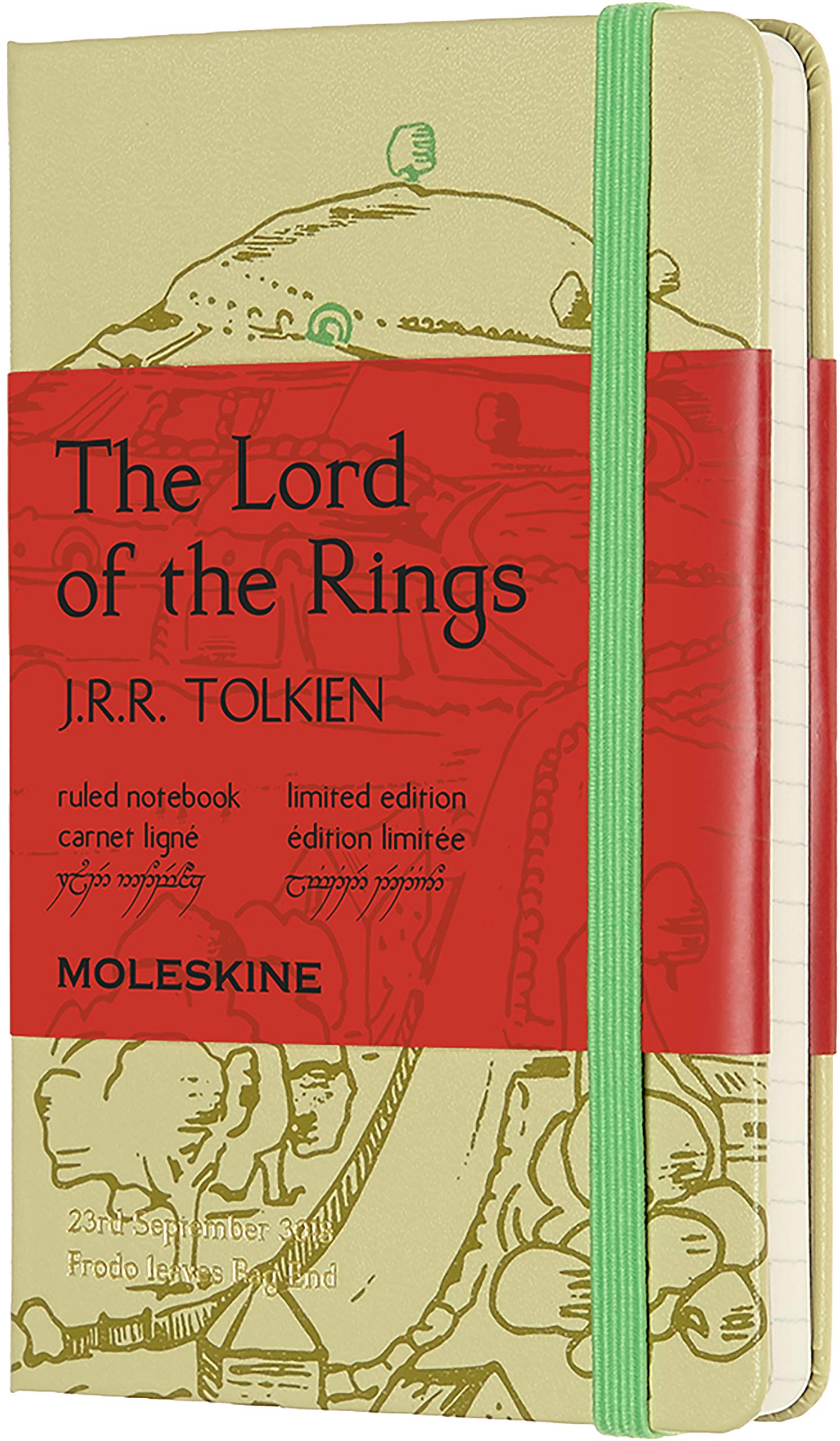 The Lord of the Rings Limited Edition Notebook Collection celebrates this classic literary adventure and the epic journey that unfolds on its pages. The notebook features some of the most iconic and enchanted landscapes crossed by the book's characters ? an infinitely rich world created in the mind of J.R.R. Tolkien which has, over time, become part of our collective imagination. Choose between Frodo leaving Bag End in the Shire, with this collection, Moleskine pays tribute to Tolkien and to any journey that inspires thought, creativity and change. Designed to become a gateway to your own ordinary and extraordinary adventures, this notebook invites you to record all the wonderful places your feet and your imagination take you.