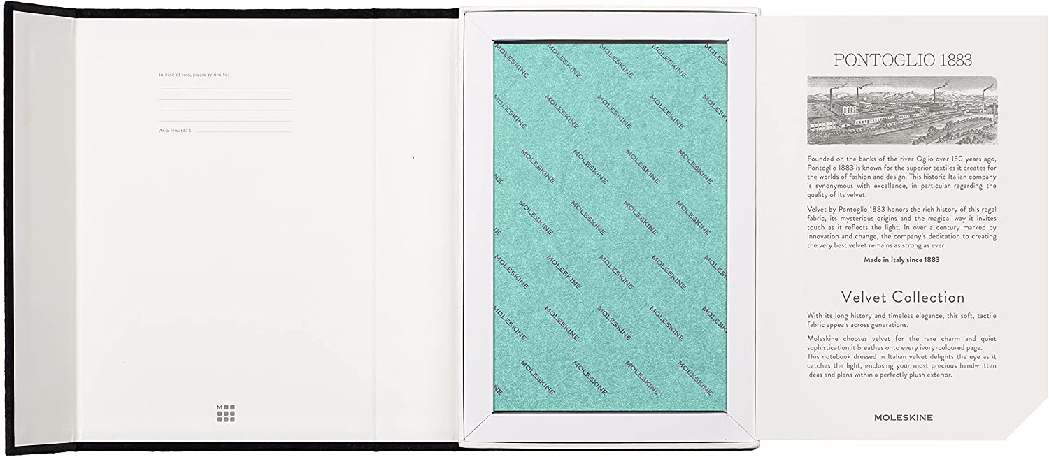 Moleskine chooses velvet by Pontoglio 1883 for the charm and quiet sophistication it breathes onto every ivory-colored page. This notebook and gift box are dressed in Italian velvet which delights the eye as it catches the light, enclosing your most precious handwritten notes within a perfectly plush exterior.