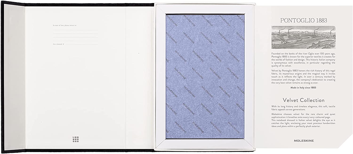 Moleskine chooses velvet by Pontoglio 1883 for the charm and quiet sophistication it breathes onto every ivory-colored page. This notebook and gift box are dressed in Italian velvet which delights the eye as it catches the light, enclosing your most precious handwritten notes within a perfectly plush exterior.