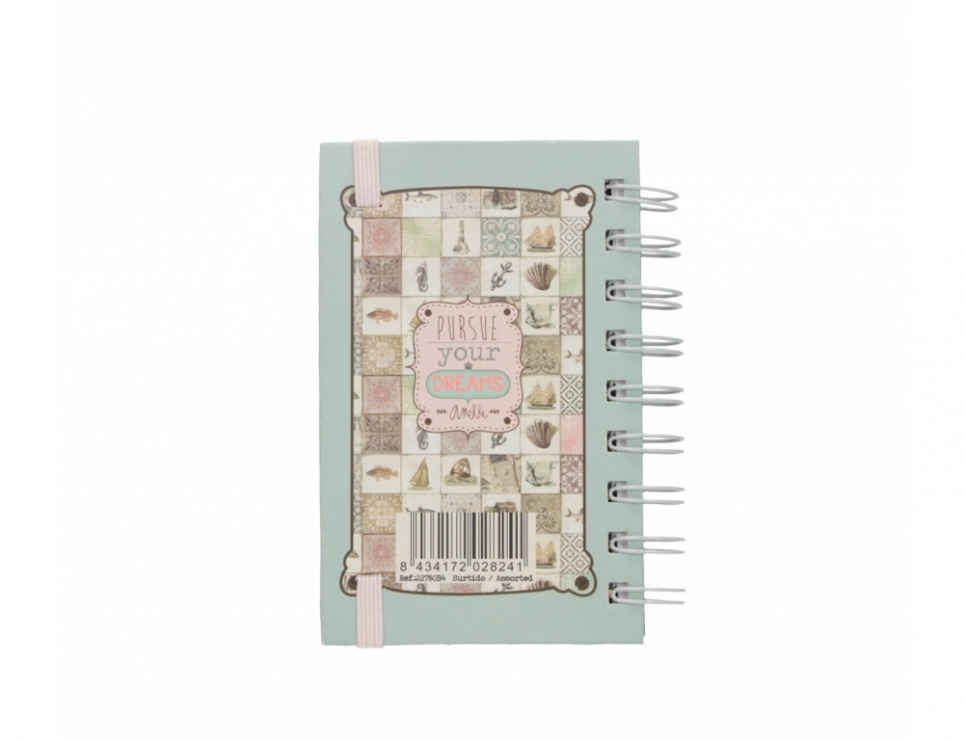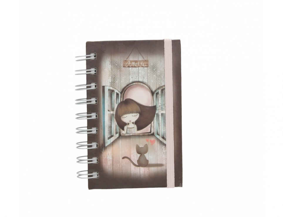 Carnet spiralat cu banda, coperta cartonata mata si hartie de 70g.