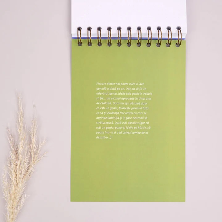 Acest notebook este un cadou perfect pentru colegii de birou. Are doua fete, una pentru ideile geniale si cealalta pentru mazgalelile din sedinte. Nu-i musai sa fie impartit in jumatate. Pentru ca, uneori, avem mai multe idei geniale. Si alteori mintea noastra nu reuseste sa astearna pe hartie decat desene incoerente. Asta nu ne face insa mai putin geniali. Pentru ca mazgalelile ne ajuta sa ne tinem mintea si mainile in priza, nu in pauza, in asteptarea momentelor in care omenirea va avea nevoie de sclipirea noastra de geniu. Cel putin asa ne place sa ne spunem atunci cand mazgalim de plictiseala in sedintele care par interminabile. Dar poate totusi e un sambure de adevar in asta si intr-o zi ne vom trezi ca din mazgalelile noastre va iesi un teleportor. Sau un robot care sa participe la sedinte interminabile in locul nostru.