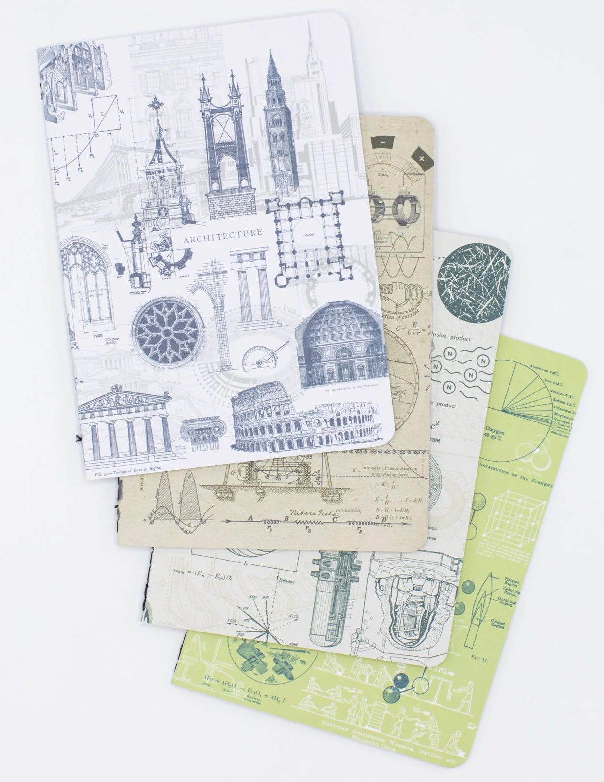 Perfect pentru cei care preferă științele exacte, aceste caiete de cercetare sunt mereu la îndemână pentru a nota idei despre îmbunătățirea unui experiment, schițele următorului tău proiect arhitectural sau concepte pentru invenții strălucite. Acest set include caiete dedicate arhitecturii, ingineriei electrice, chimiei și fizicii nucleare.