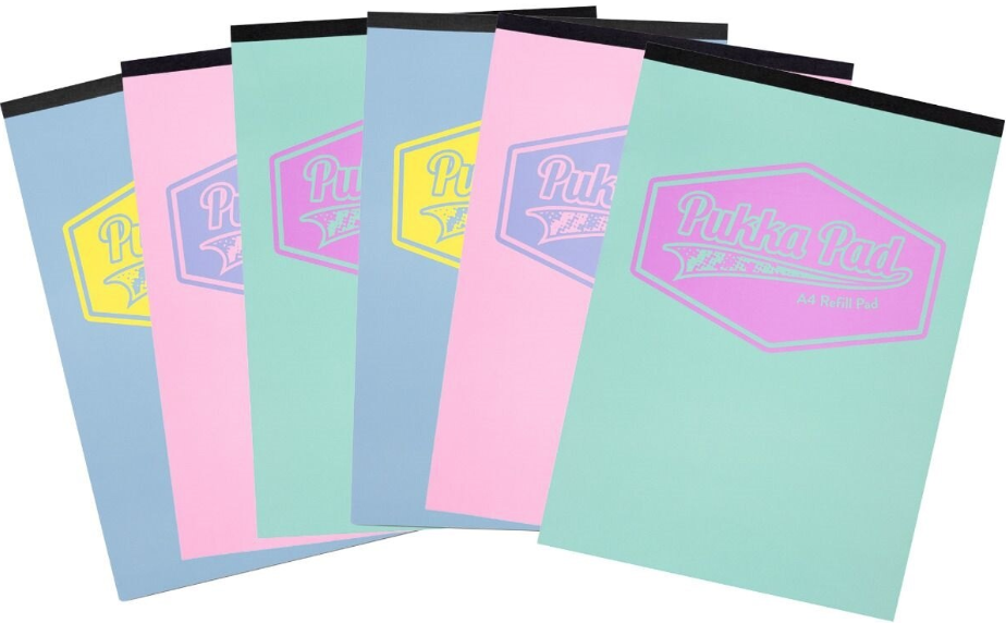 Set 6 caiete Pukka Pads Pastel, dictando, A4, 160 pag, hartie 80 g, coperti cartonate mix culori