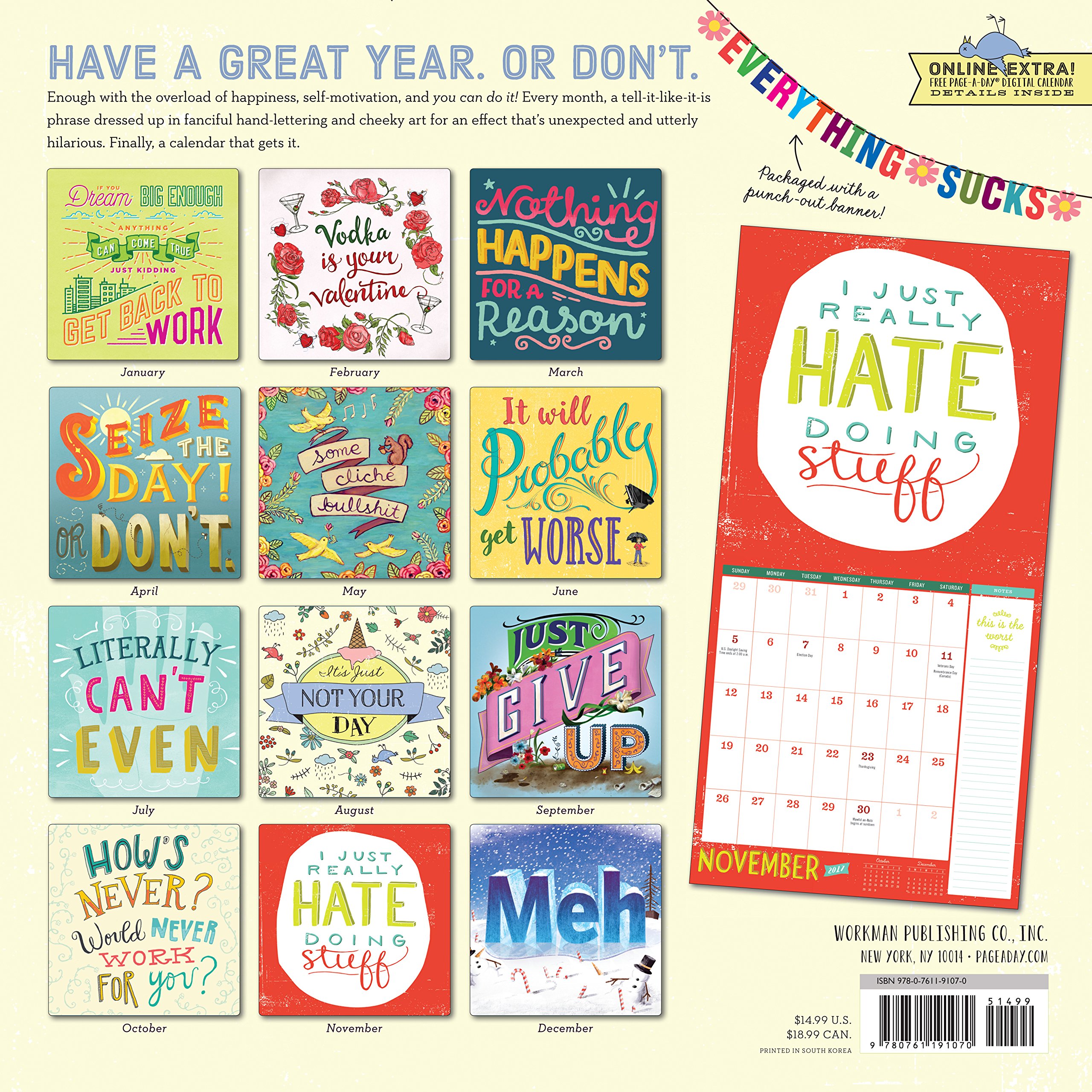 Acest calendar demotivational este extrem de sincer intr-un mod haios: "I just really hate doing stuff", "Nothing happens for a reason", "It will probably get worse", "Just give up". Este calendarul perfect pentru cei cinici.