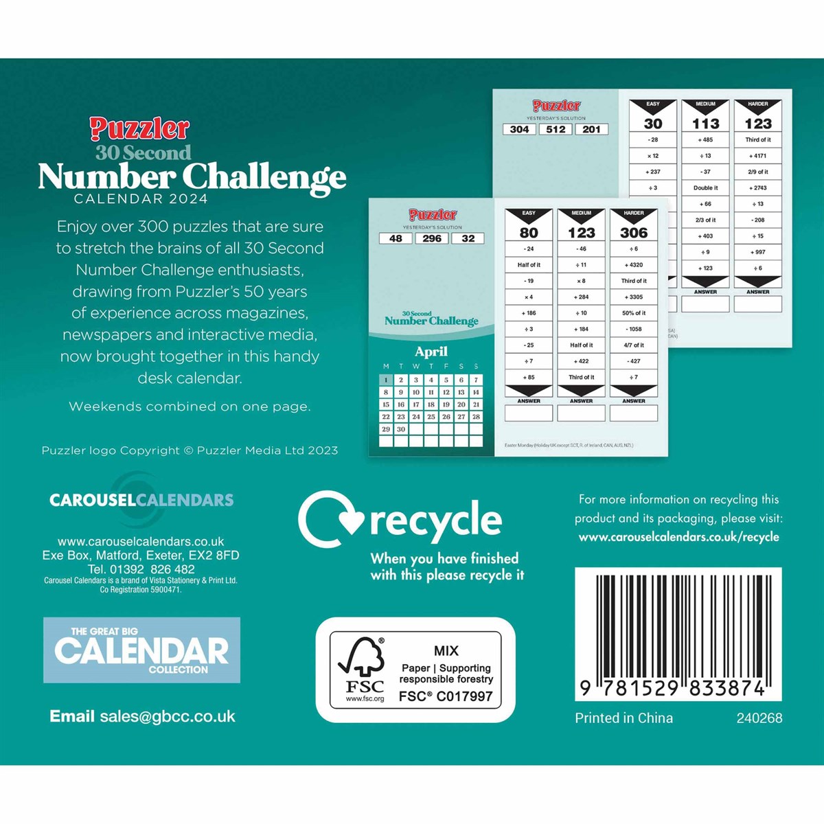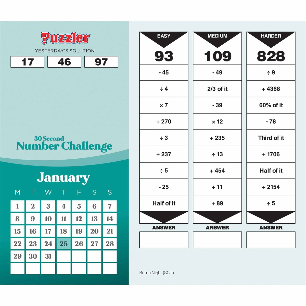 Calendar 2024 - 30 Second Number Challenge Puzzler