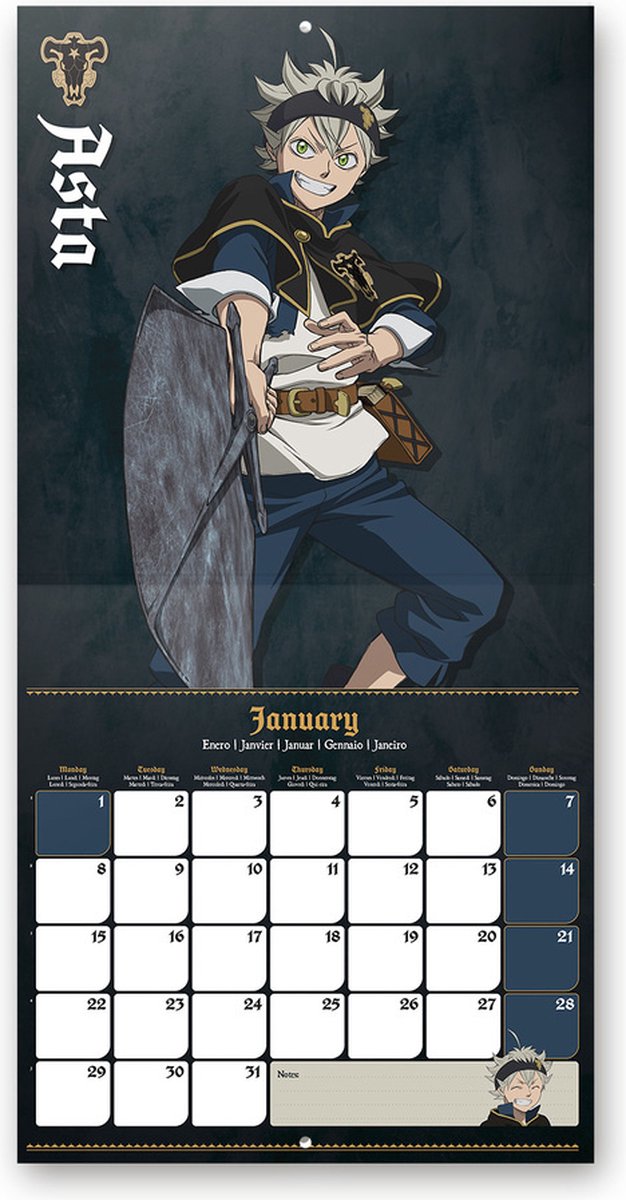 Calendar de perete Black Clover pentru perioada ianuarie - decembrie 2024.
