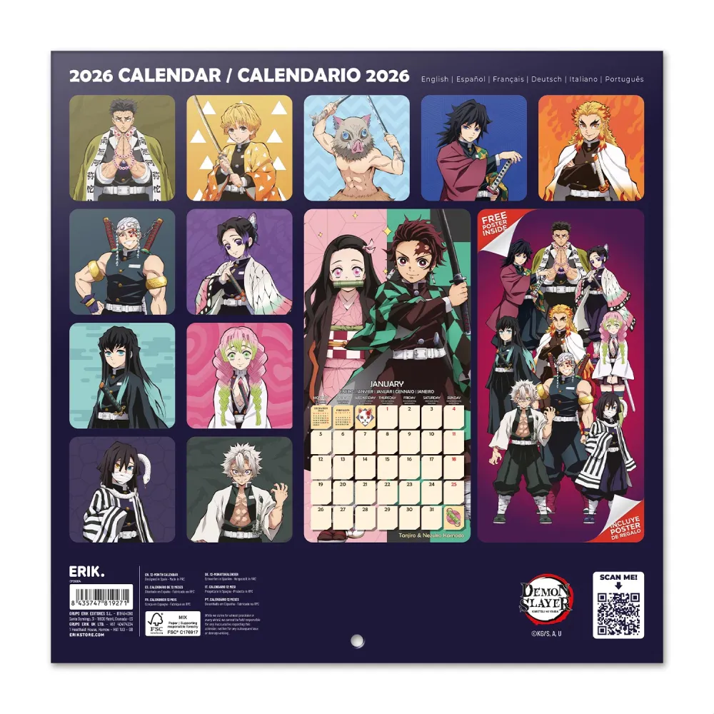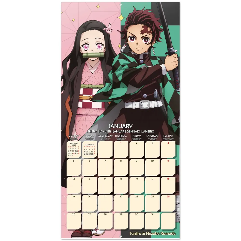 Retrăiește povestea lui Tanjiro, Nezuko și Hashira cu Calendarul Vânător de Demoni 2026.