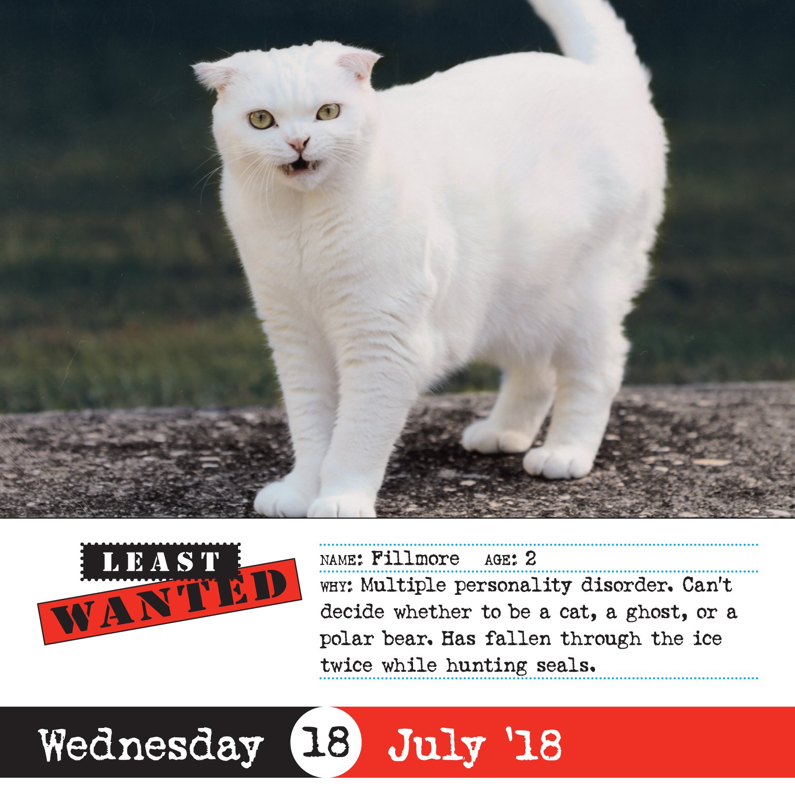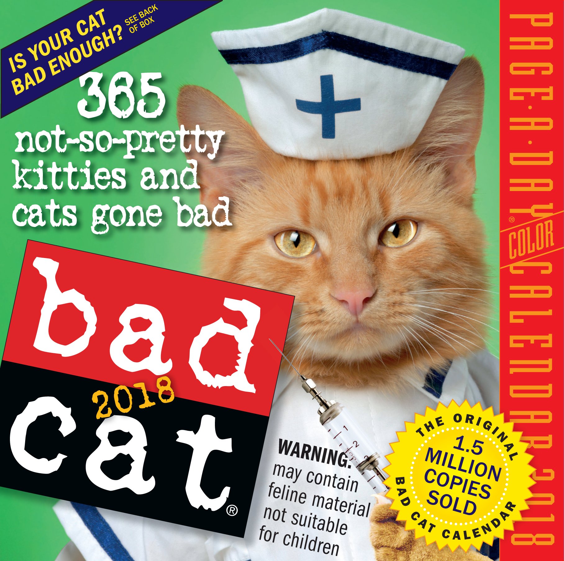 An outrageously hilarious calendar adapted from the #1 New York Times bestselling book, Bad Cat Page-A-Day Calendar is a terribly behaved yet irresistible walk on the feline wild side. Here are cats running away from home. Cats with devil horns. Cats facing off with innocent frogs. Cats slyly hiding in sneaker boxes. Now including Bad Cat Beauty Secrets, Least Wanted Bad Cats, Bad Cat Diet Secrets, Who's Who in Bad Cats, and extremely helpful Bad Cat Early Warning Signs, like 'Cat hasn't cracked a smile since 2009.'