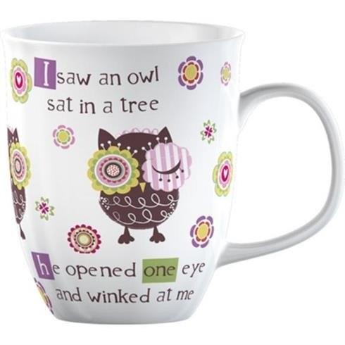 Cana de portelan inscriptionata - "I saw an owl / sat in a tree / he opened one eye / and winked at me"
