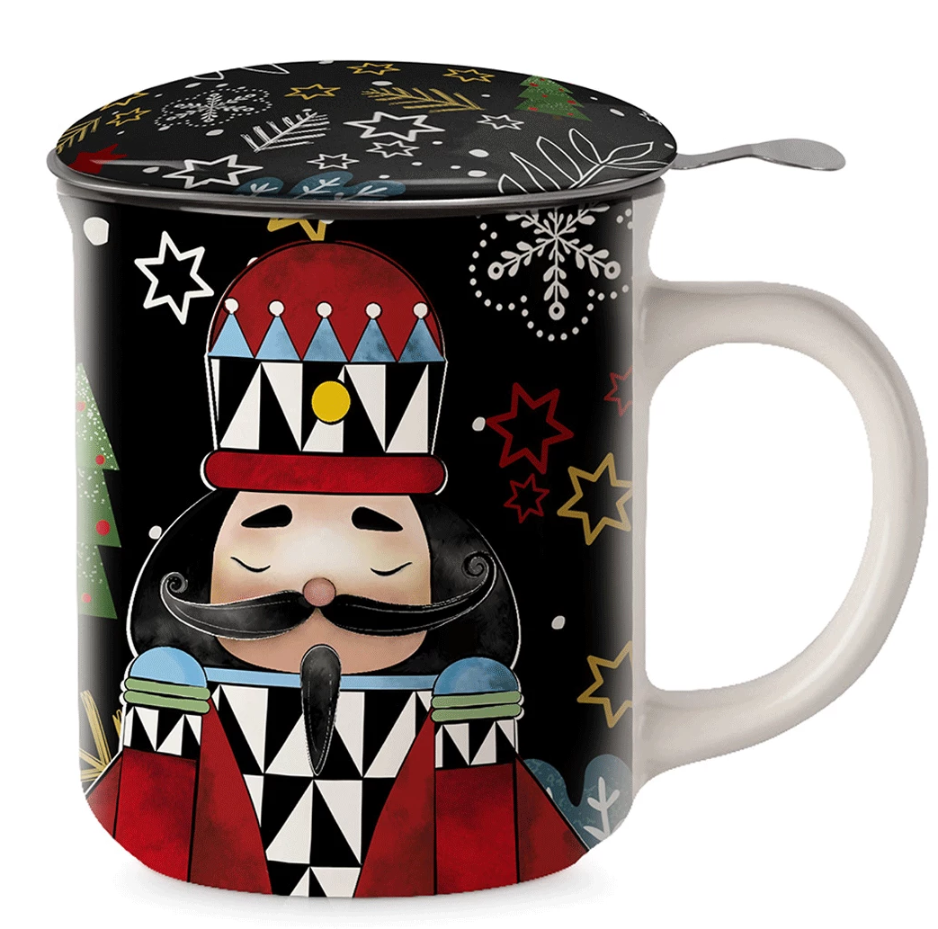 Descoperiți magia ceaiului într-un mod unic cu cana și coșul nostru inspirat de „Spărgătorul de nuci”. Fabricată din porțelan de cea mai înaltă calitate, această cană cu design unic, inspirat de „Spărgătorul de nuci”, nu este doar un accesoriu elegant pentru vas, ci și o soluție practică pentru iubitorii de ceai. Coșul metalic cu capac de porțelan va face din consumul de ceai o experiență unică, în timp ce detaliile inspirate de „Spărgătorul de nuci” vor adăuga farmec oricărei băuturi.